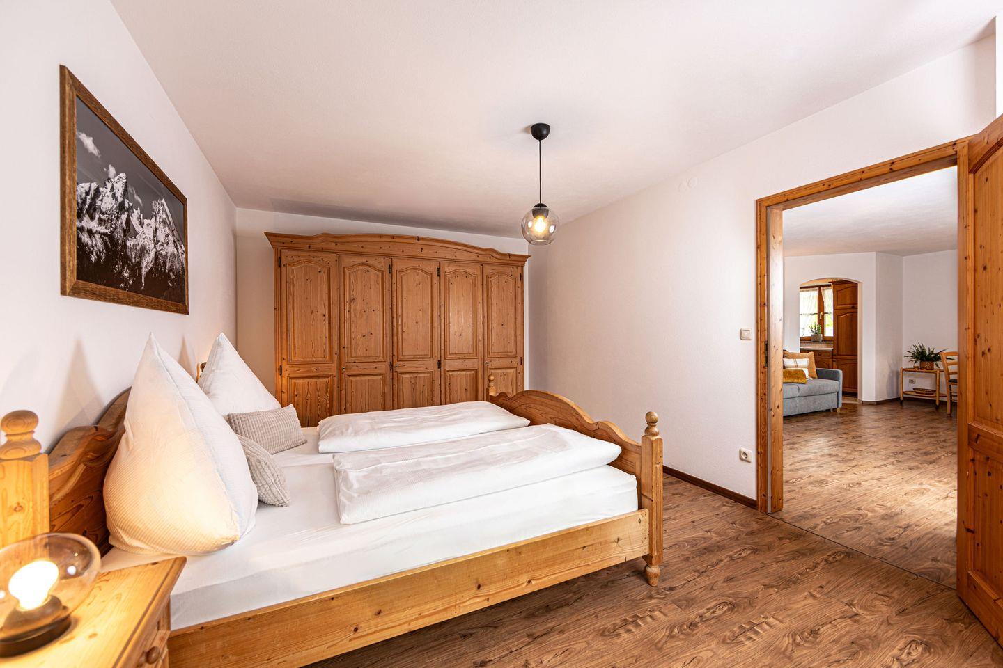 Die Ferienwohnung Nr. 2 im Scheffmannlehen in Ramsau bei Berchtesgaden ist der ideale Rückzugsort für Reisende, die eine harmonische Verbindung von ländlicher Idylle und modernem Komfort suchen. Auf einer großzügigen Fläche von 50 m² bietet diese Ferienwohnung Platz für bis zu vier Personen und ist somit hervorragend geeignet für Familien oder Paare, die ihren Urlaub in einer malerischen Umgebung genießen möchten. Die Wohnung befindet sich im Parterre und wurde im Jahr 2024 vollständig renoviert, sodass Sie sich auf eine zeitgemäße Ausstattung und eine einladende Atmosphäre freuen können. Die Unterkunft verfügt über ein gemütliches Schlafzimmer mit Doppelbett. Im offenen Wohnbereich finden Sie eine Sofaecke, die zum Entspannen und Verweilen einlädt. Der Essbereich bietet ausreichend Platz für gemeinsame Mahlzeiten und gesellige Abende. Die moderne Küche ist vollständig ausgestattet mit einem Herd, einem Backofen, einem Kühlschrank mit Gefrierfach, einer Kaffeemaschine, einem Toaster und allem notwendigen Küchenutensilien sowie Geschirr und Besteck. Das Badezimmer ist mit einer Dusche, einem Waschbecken und einer Toilette ausgestattet, Handtücher und Bettwäsche stehen bereit. Ein besonderes Highlight ist die überdachte Terrasse, die mit Gartenmöbeln eingerichtet ist. Hier haben Sie die Möglichkeit, den herrlichen Bergblick zu genießen. Die Wohnung ist eine Nichtraucherunterkunft. Kostenfreies WLAN und Parkplatz sind vorhanden.