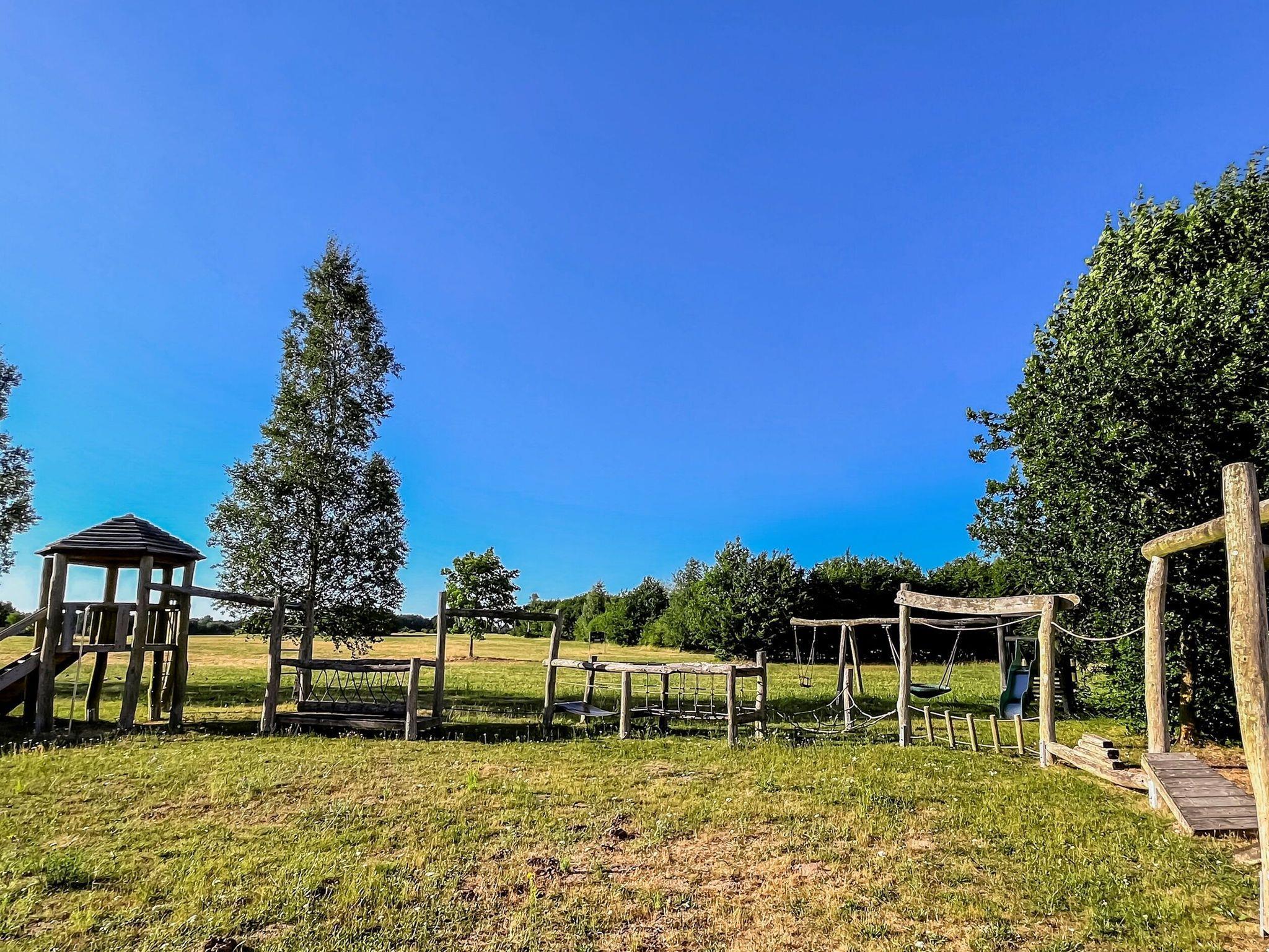 Für zusätzliche Entspannung sorgt das moderne Saunahaus, das 2022 fertiggestellt wurde (Nutzung gegen Gebühr). Mit Ruhebereich und einer Außenterrasse mit Sonnenliegen bietet es den perfekten Ort für Wellnessmomente.