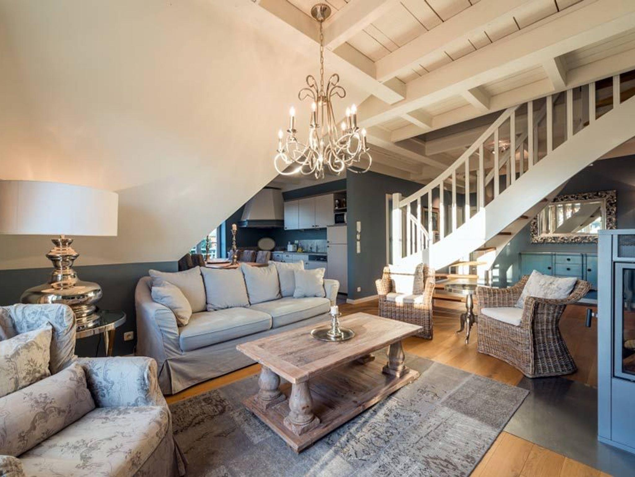 Für noch mehr Platz und Komfort können Sie die Mastersuite im Dachgeschoss hinzubuchen. Diese bietet ein drittes Schlafzimmer mit Boxspringbett und ein weiteres hochwertiges Badezimmer mit Dusche und WC. Preis: 30 € pro Tag. Der Zugang erfolgt bequem über eine Treppe innerhalb der Wohnung.