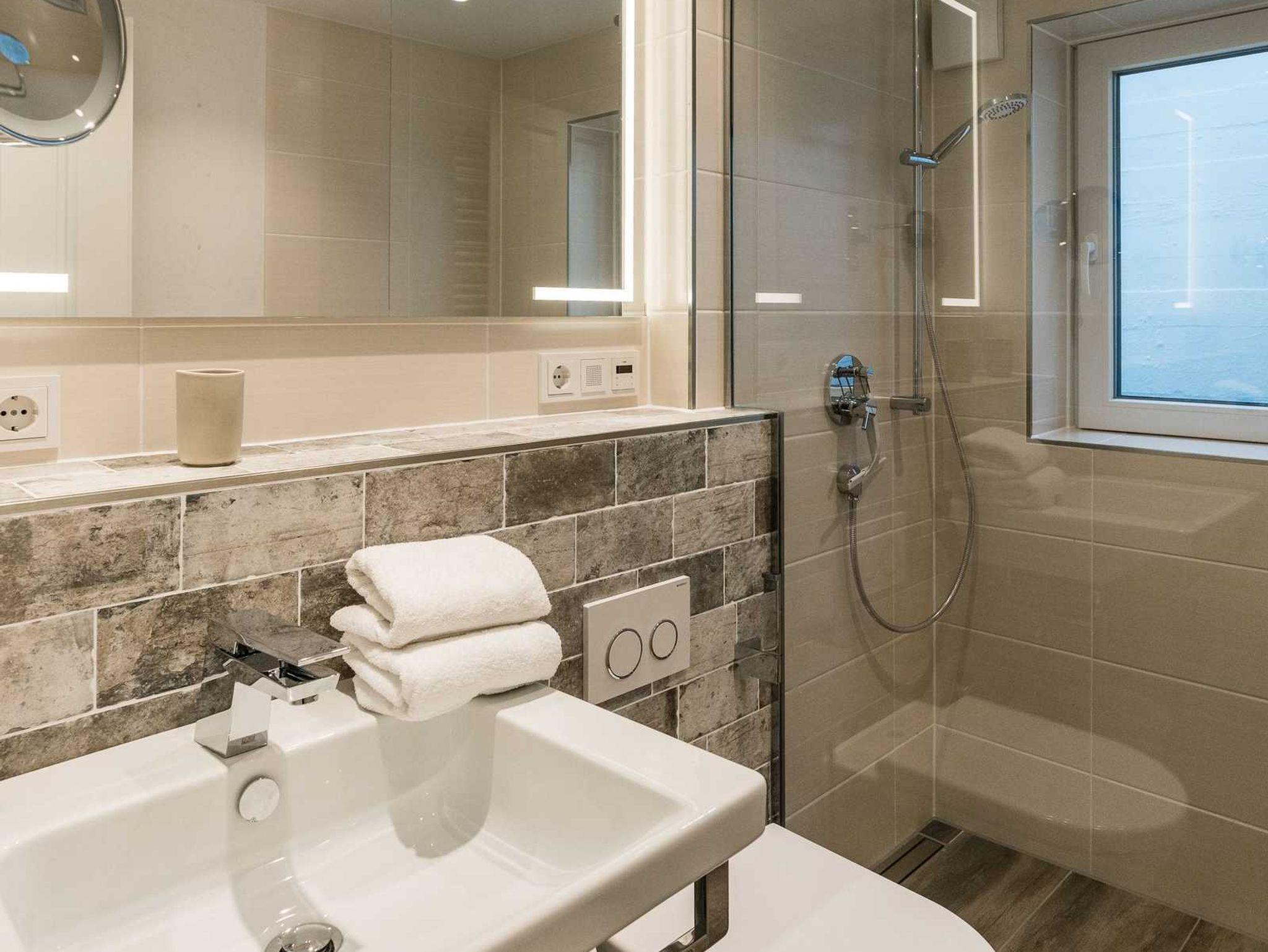 Im Erdgeschoss befindet sich der großzügige Wohn-/ Essbereich, ausgestattet mit einer komfortablen Doppelschlafcouch, einem Ledersessel, Smart-TV und einem Esstisch für 4 Personen. Die separate Küche ist ausgestattet mit einem Backofen mit Mikrowellenfunktion, Ceran-Kochfeld, einer Kaffeemaschine sowie eine Nespresso Kapselmaschine. Das Schlafzimmer verfügt über ein sehr bequemes Boxspringbett (180 cm breit) und eine große Fensterfront und befindet sich im Untergeschoss der Wohnung .Das Schlafzimmer ist noch mit einem zusätzlichen Smart-TV ausgestattet. Das Bad, ebenfalls im UG des Hauses, verfügt ebenfalls über ein Fenster und ist mit einer ebenerdigen Regendusche, sowie einem Kosmetikspiegel, einem fest integriertem Radio und Fußbodenheizung, ausgestattet.