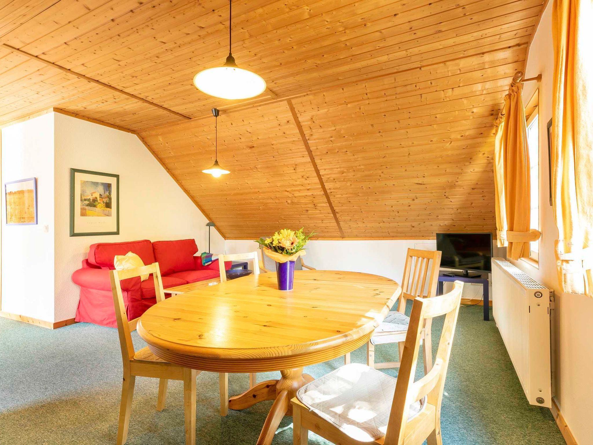 Bei der Ferienwohnung Typ Lerche handelt es sich um eine Ferienwohnung im Obergeschoss eines Ferienhauses mit einer Größe von 50 qm, für 4 Personen.