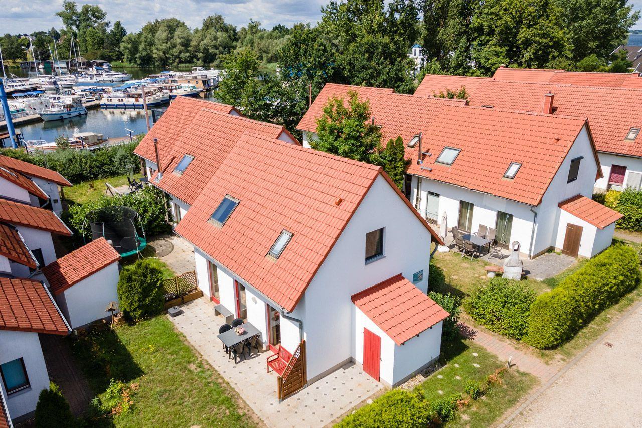 Gemütliches Ferienhaus/ Reihenendhaus für 6 Pers., 3 SZ, 2 Bäder mit Süd- Terrasse, kleiner Garten, Blick zum 100 m entfernten Hafen und dem Claasssee, WLAN, unweit vom Badestrand im Hafendorf an der Müritz