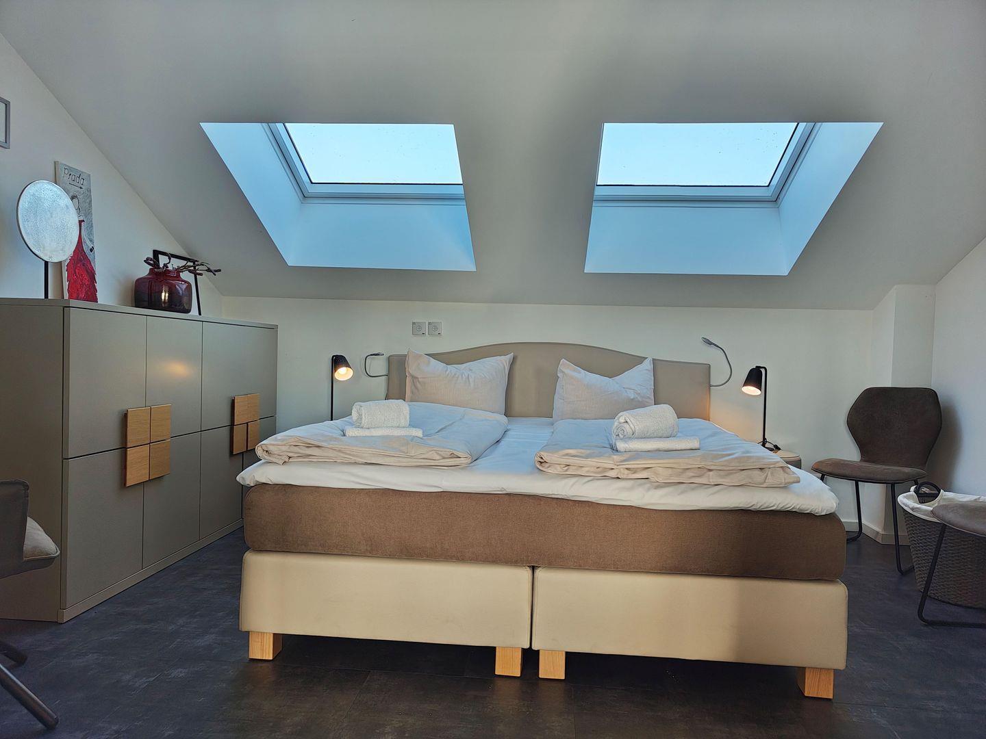 Das Apartment mit Blick auf den Hafen bietet Platz für bis zu 4 Personen auf 1 Etage im oberen Geschoss unserer Skipper-Ferienhäuser mit 2 Schlafzimmern. Es verfügt über einen offenem Wohn-/Essbereich, Küchenzeile, Dampf-Sauna , Balkon, 2 PKW-Stellplätzen. Für den perfekten Start in den Urlaub sind die Betten bei Anreise frisch bezogen und eine Erstausstattung Handtücher liegt bereit. Die Energiekosten sind im Mietpreis inklusive.