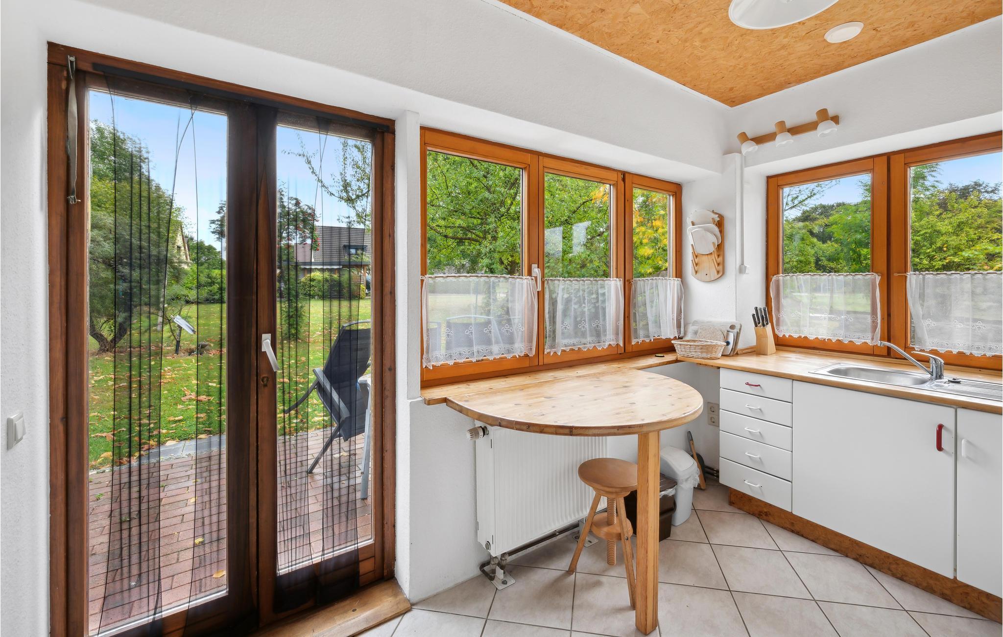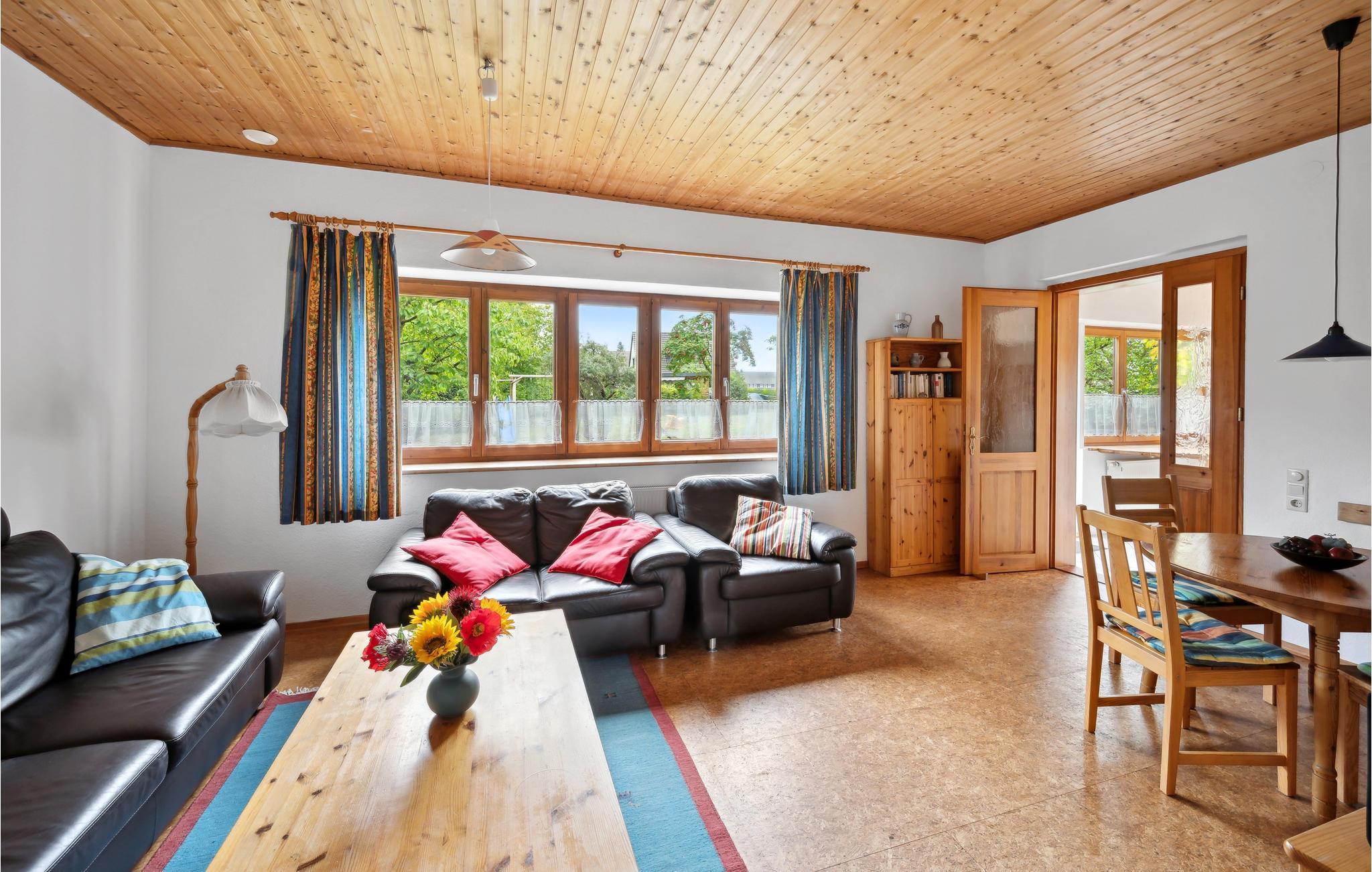 Willkommen in dieser Wohnung im Erdgeschoss, in der Sie es sich mit Ihren Lieben gemütlich machen und spannende Ausflüge in die Umgebung unternehmen können. Die wohnliche Einrichtung mit viel Holz sorgt dafür, dass Sie hier in ansprechendem Ambiente gemeinsam entspannen können. Für zusätzlichen Komfort sorgt das barrierefrei gestaltete Badezimmer. Nach einem erlebnisreichen Tag lädt das Wohnzimmer, in dem Sie einen schönen Blick in den Garten genießen, zu gemütlichen gemeinsamen Abenden ein.