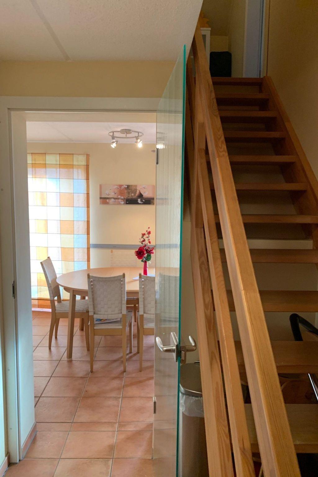 Die eigene Terrasse, von der aus Sie auch zum See schauen können, erreichen Sie über den Wohn - Essbereich. Gartenmöbel und ein Grill stehen in einem kleinen Anbau zur Verfügung. In diesen Anbau können Sie Ihre mitgebrachten oder ausgeliehenen Fahrräder einschließen. Zwei PKW Stellplätze befinden sich am Haus., Alle Fenster und die Terassentür sind mit Fliegenschutzgittern gegen ungebetene Insekten geschützt.