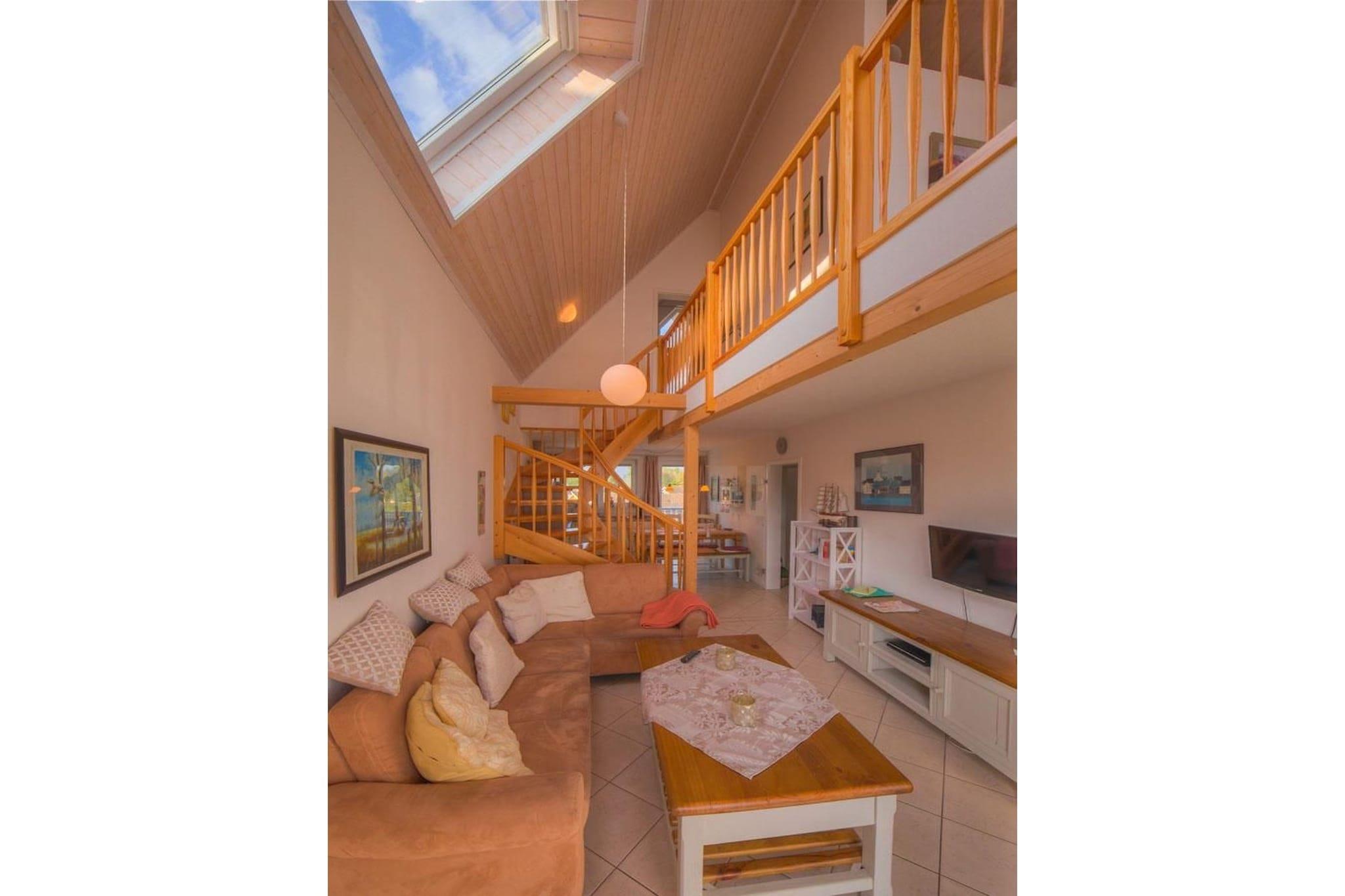 In der 2. Etage: (offene Küche(Wasserkocher, Toaster, Kochherd, Kaffeemaschine, Mikrowelle, Spülmaschine, Kühl-/Gefrierkombination), Wohn/Esszimmer(TV, Esstisch, Kaminofen, Sitzecke), Badezimmer(Whirlwanne, Dusche, Sauna(alleinige Nutzung), Waschbecken, Toilette), Badezimmer(Dusche, Waschbecken, Toilette), Internet) Dachgeschoss: (Schlafzimmer(Doppelbett), Schlafzimmer(Einzelbett, Einzelbett), Empore(Französisches Bett)) Balkon, Heizung(Gas), Gartenmöbel, Grill(elektrisch), Parkplatz, Hochstuhl, Babybett (kostenpflichtig), Handtücher/Bettwäsche (inklusive)
