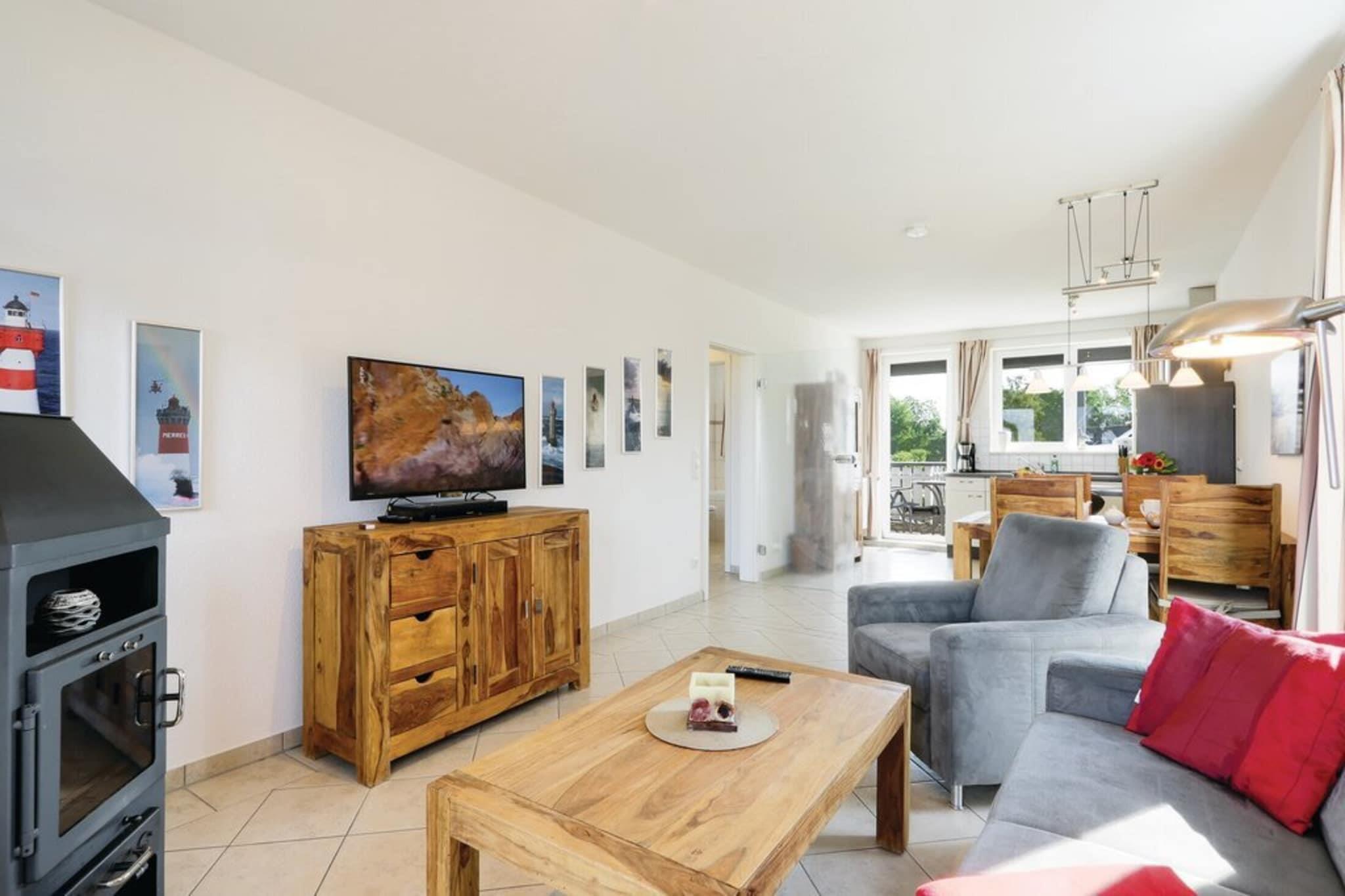 Das charmante Apartment gelegen im Ferienpark Müritz welcher über ein kleines privates Ferienpark-Strandbad direkt an der Müritz, Deutschlands Kleinem Meer, verfügt. Eingebettet in Rechlin bildet die Region ein Tor zum Müritz-Nationalpark, der sich perfekt für Erkundungen zu Fuß, mit dem Fahrrad oder mit der Pferdekutsche eignet. Die Landschaft ist geprägt von flachen Sandstränden und zahlreichen kleinen Seen mit kristallklarem Wasser und eignet sich ideal zum Entspannen und für Aktivitäten im Freien. In der Nähe können die Gäste eine Vielzahl von Attraktionen genießen, darunter ein Schwimmbad und eine Sauna im 12 km entfernten Ferienpark Mirow. Einführungskurse für Surfen und Segeln werden nur 5 km vom Park entfernt angeboten. Ausflüge zur Schlossinsel in Mirow, zum Schloss in Wesenberg und in die Stadt Neustrelitz bieten kulturelle Abwechslung. Für diejenigen, die mehr Abenteuer suchen, sind Berlin, Potsdam und Rostock für Tagesausflüge leicht erreichbar und bereichern das Urlaubserlebnis. Der Park bietet umfangreiche maritime Aktivitäten und bietet von der Marina aus schleusen- und brückenfreien Zugang zur Müritz. Gäste können offene Sportboote ohne Führerschein oder größere Hausboote mieten und auch ihre eigenen Boote anlegen. Zu den Einrichtungen gehören ein 90-Tonnen-Kran, ein 3,2-Tonnen-Säulenkran, ein Anhängerparkplatz und ein Marina-Shop. Angler werden den reichen Fischbestand in der Müritz zu schätzen wissen, der ihnen die Möglichkeit bietet, verschiedene Arten wie Brachsen, Aale, Barsche, Zander und Hechte zu fangen. Dieser Ferienpark ist ein ausgezeichnetes Ziel für Entspannung und Abenteuer in einer atemberaubenden Naturlandschaft.