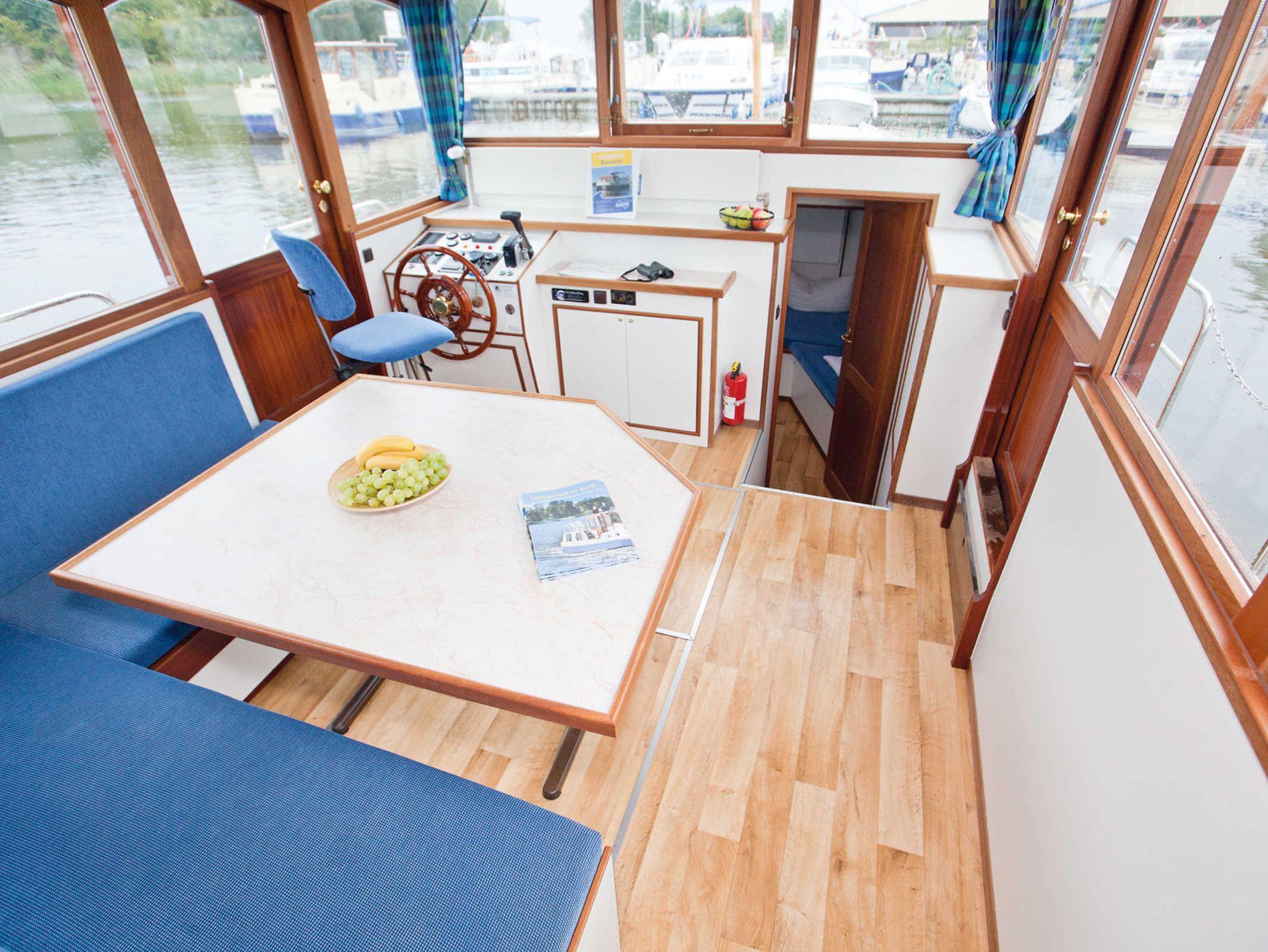 Das moderne Hausboot verfügt über 3 Kabinen, 3 Bäder einen großzügigen Salon, sowie ein großes Sonnendeck. Zusätzlich befindet sich am Heck eine Badeplattform mit Außendusche.