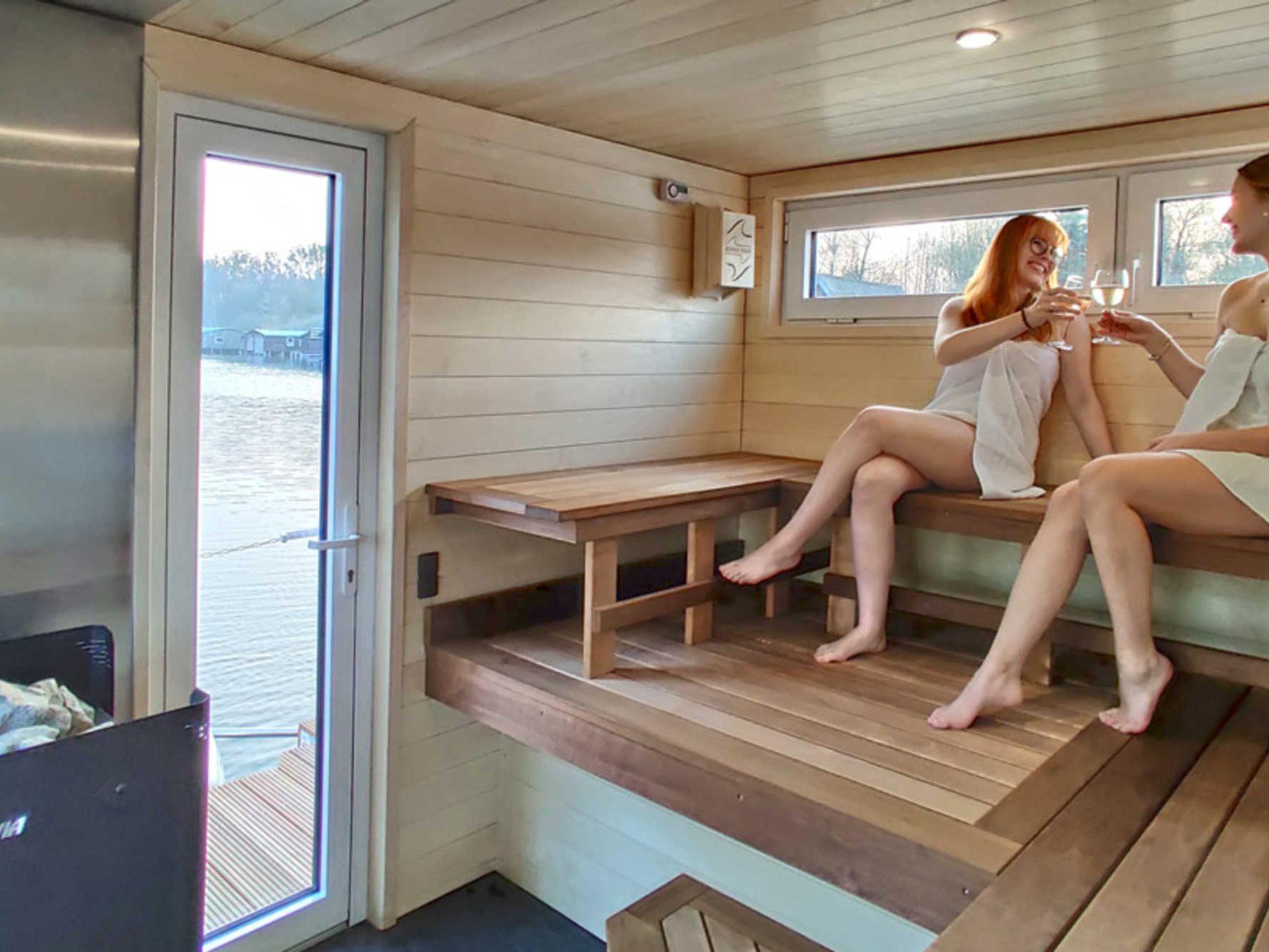 Wenn Sie Ihren Kreislauf wieder in Schwung bringen wollen, leihen Sie sich unser Sauna-Hausboot aus. Perfekt für Familien oder Menschen mit eingeschränkter Mobilität.