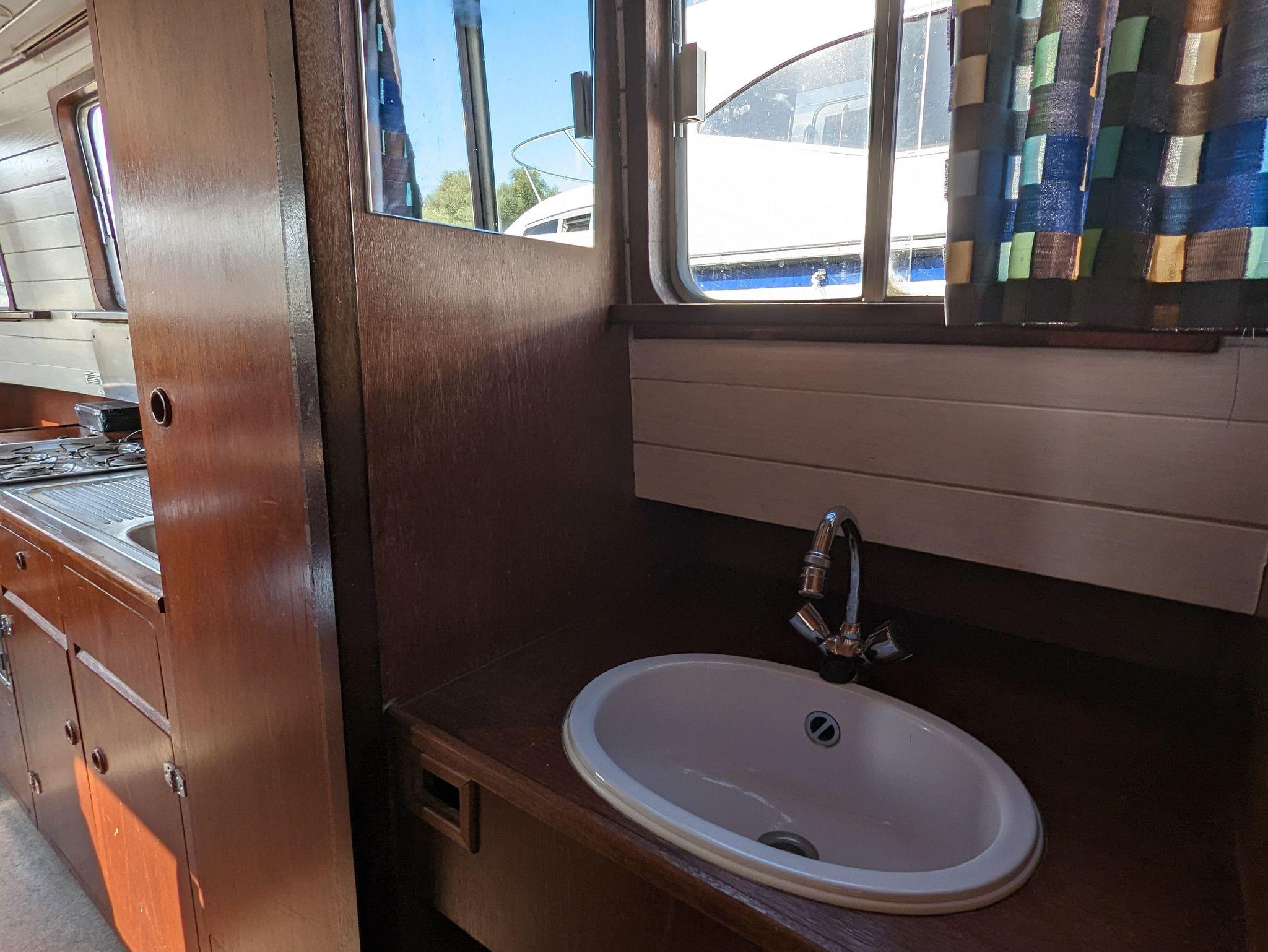 Traditionelles Hausboot im Stil der englischen Narrowboats mit einer einzigen Wohnebene - ideal für ein Paar oder kleine Familien mit kleinerem Budget.