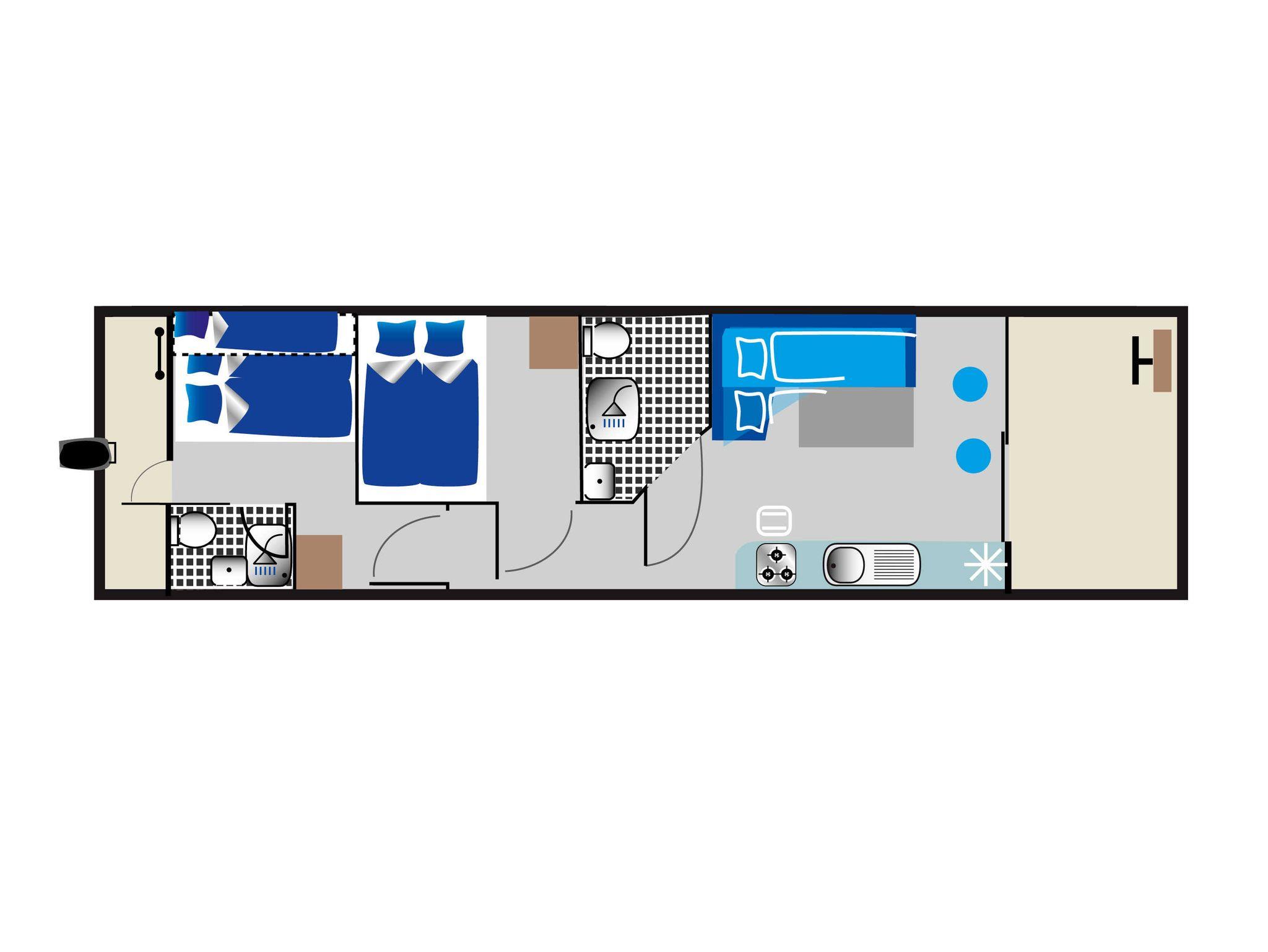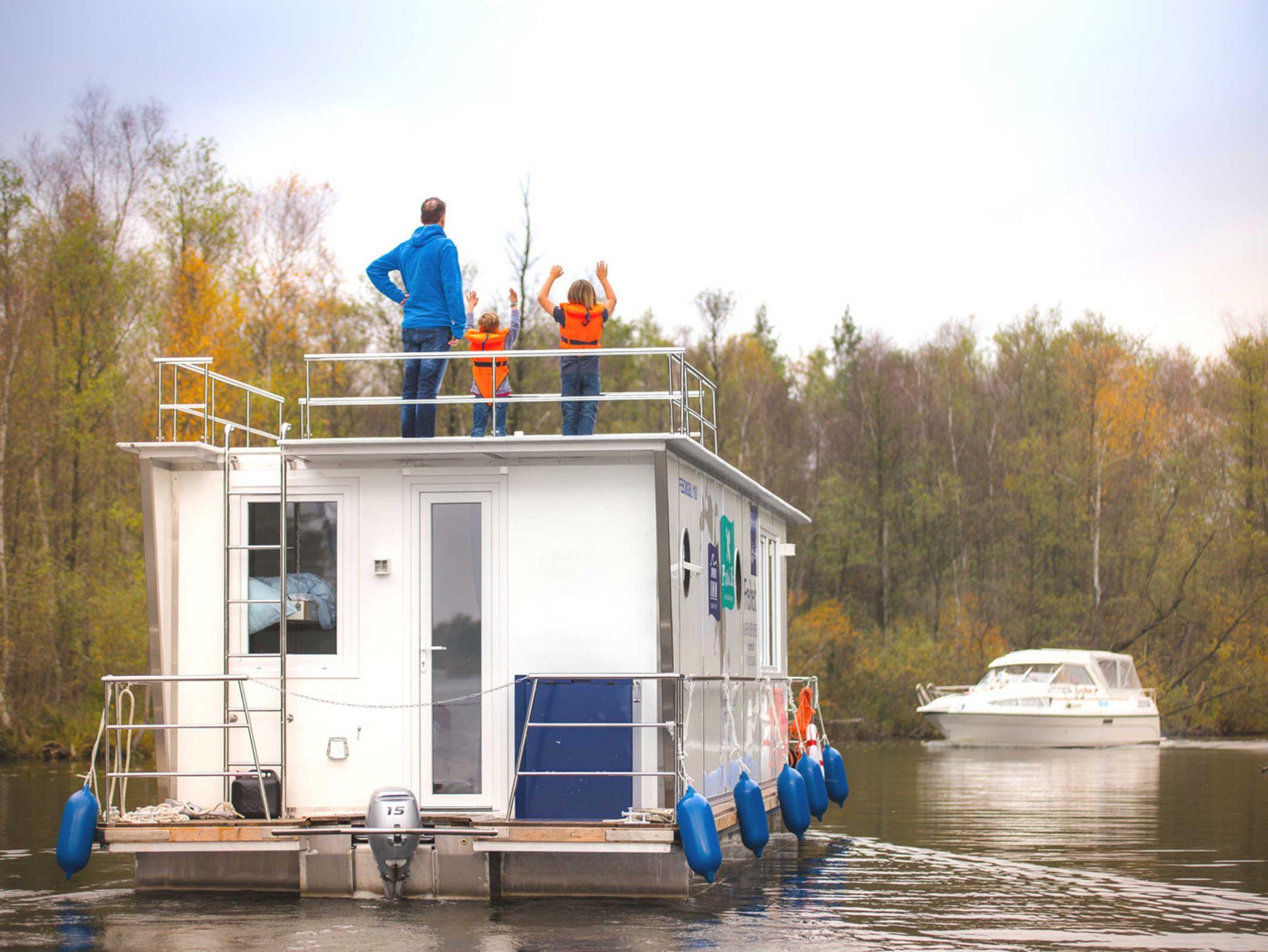 Das große Febomobil ist perfekt für Familien oder Menschen mit eingeschränkter Mobilität. Das Ferienhaus auf dem Wasser bietet Ihnen alle Annehmlichkeiten von großem Schlafzimmer bis zur voll ausgestatteten Küche.