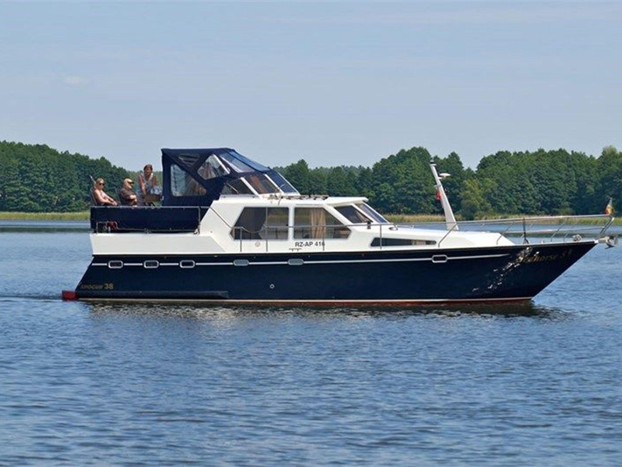 Boats & Yachts at Rechlin Harbor by Kuhnle-Tours, Shogun 38 - führerscheinfreies Hausboot