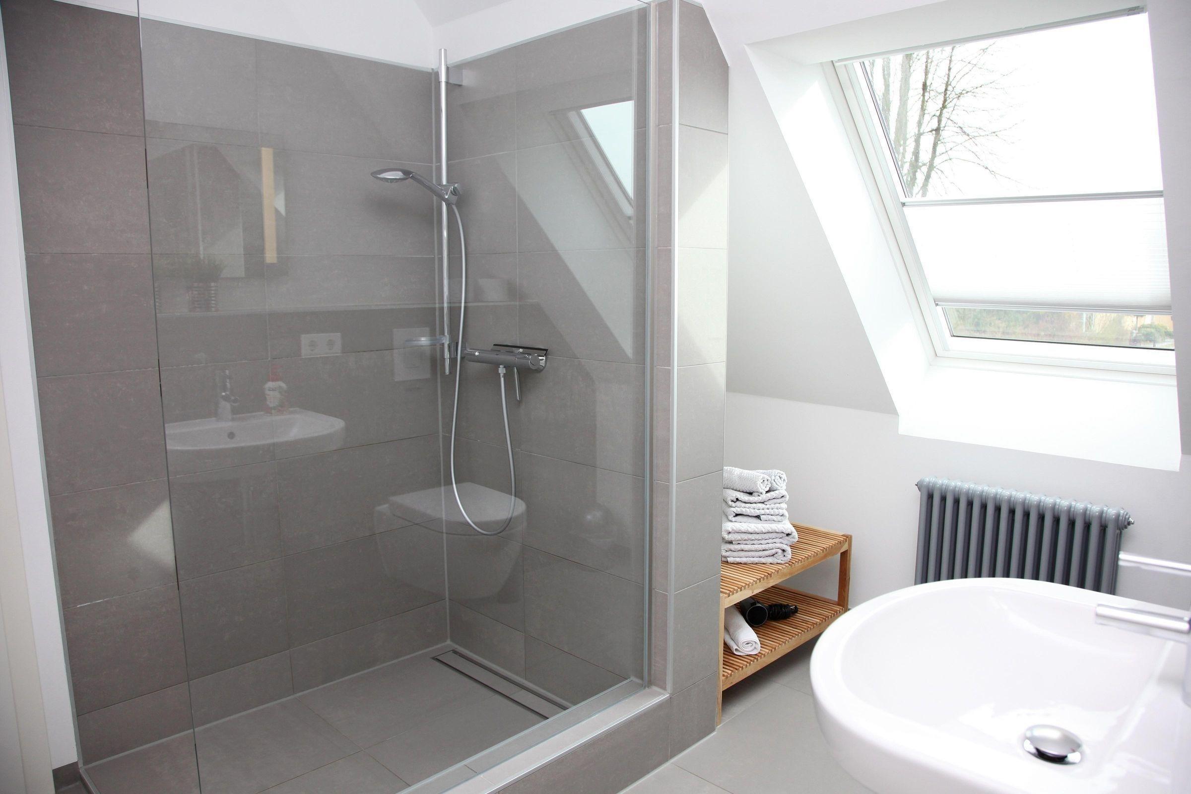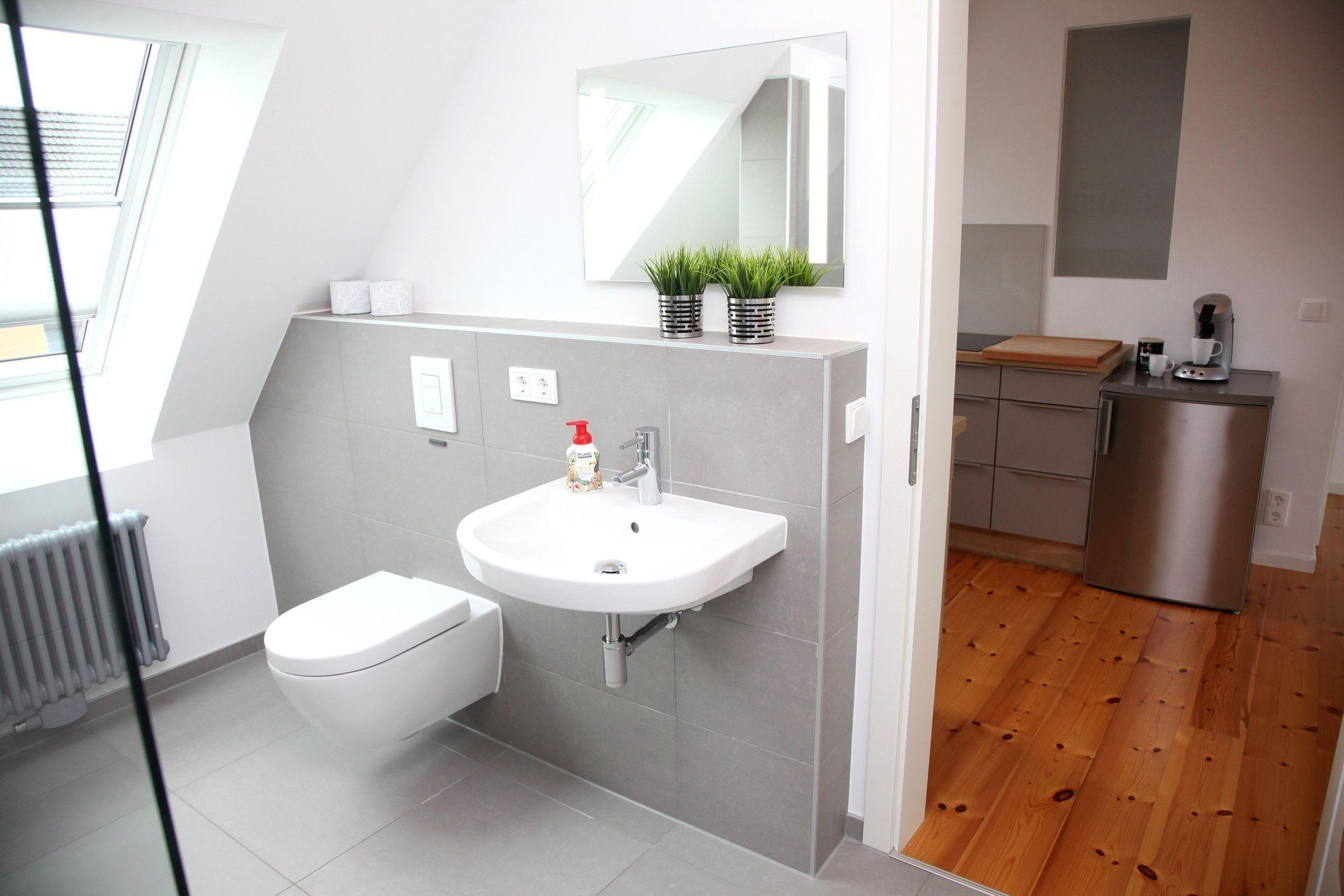 Die Ferienwohnung überzeugt durch ihre moderne Ausstattung und einladende Räume. Sie bietet ein Schlafzimmer mit einem komfortablen Doppelbett, das für einen erholsamen Schlaf sorgt. Das helle Badezimmer mit Fenster verfügt über eine bodengleiche Dusche, einen Spiegel sowie einen Haartrockner.