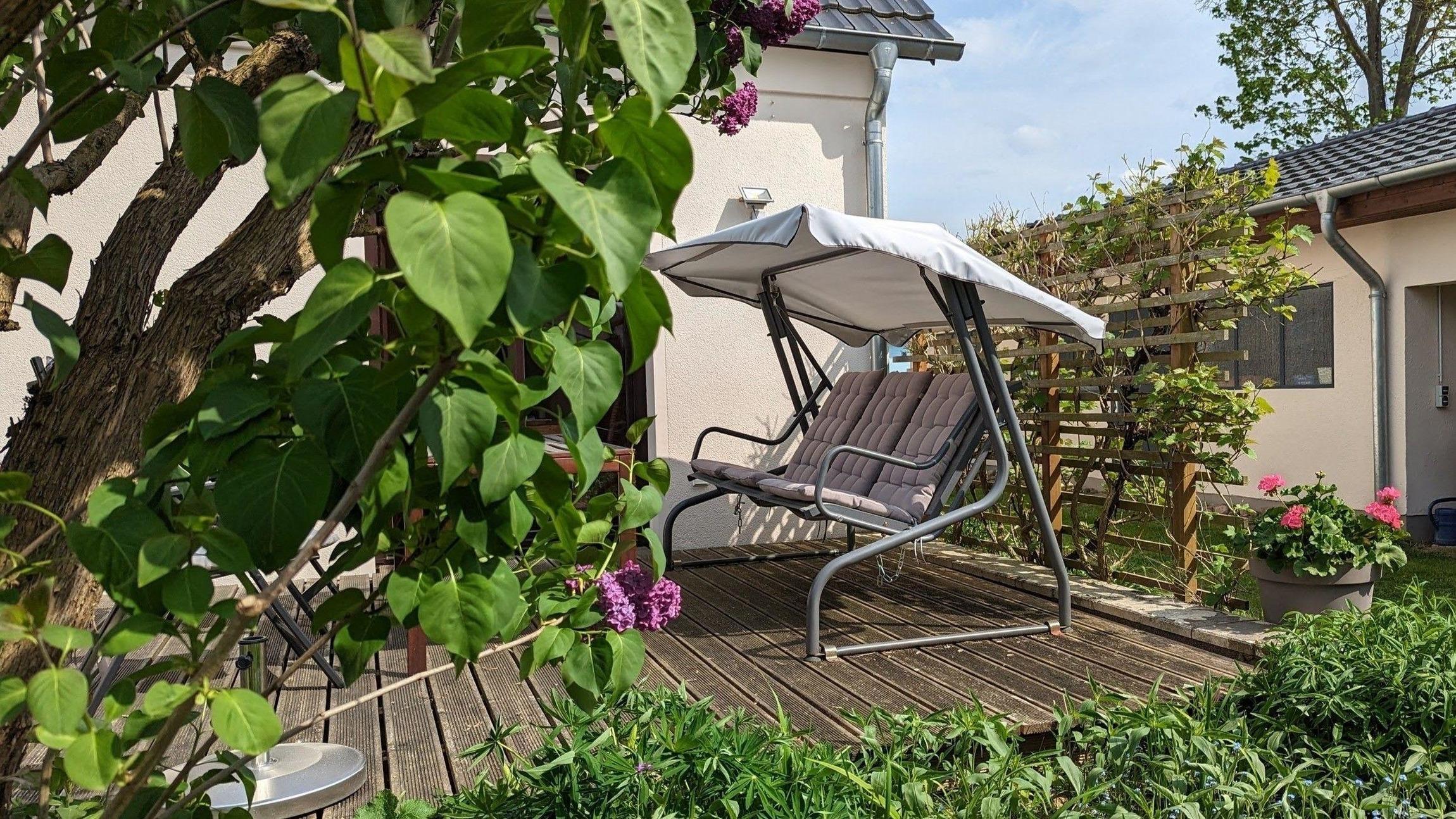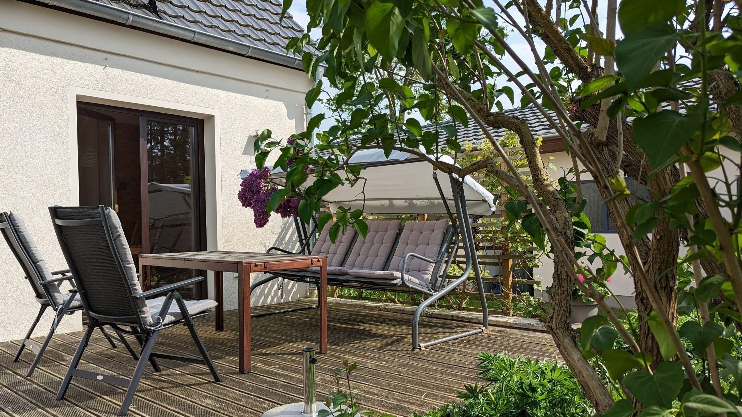 Die Ferienwohnung bietet einen privaten Außenbereich mit einer einladenden Terrasse und einem eigenen Garten, ideal zum Entspannen. Gästen stehen bequeme Liegestühle zur Verfügung, während ein Holzkohlegrill für gesellige Grillabende einlädt. Zudem ist eine E-Ladestation für Elektrofahrräder vorhanden, was die Erkundung der Umgebung erleichtert. Ein perfekter Ort für erholsame Stunden im Freien.