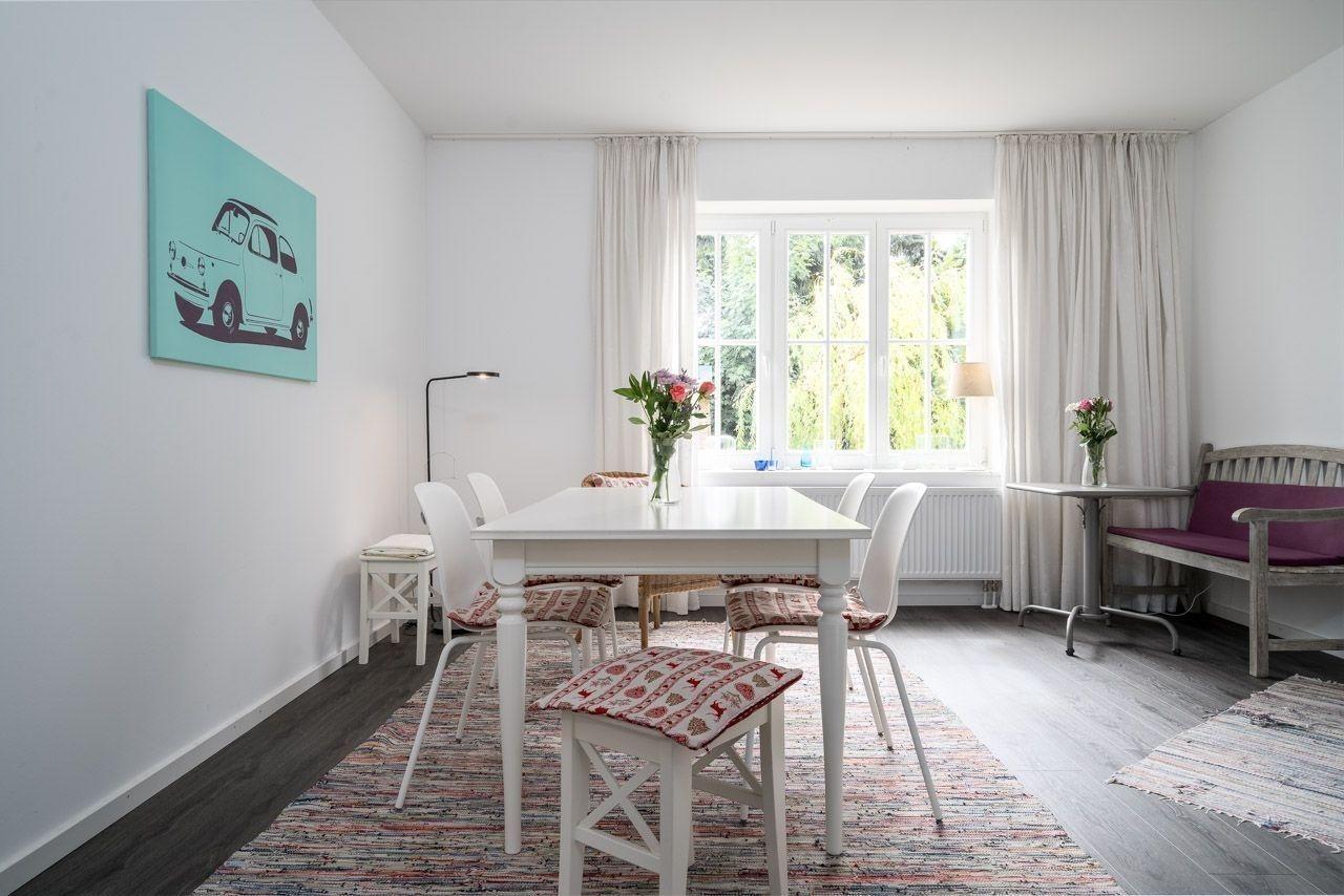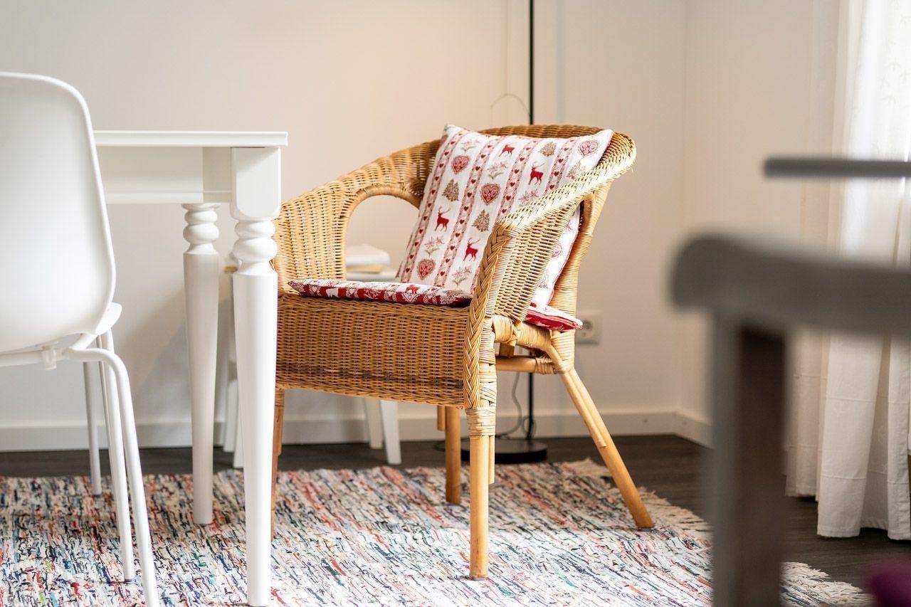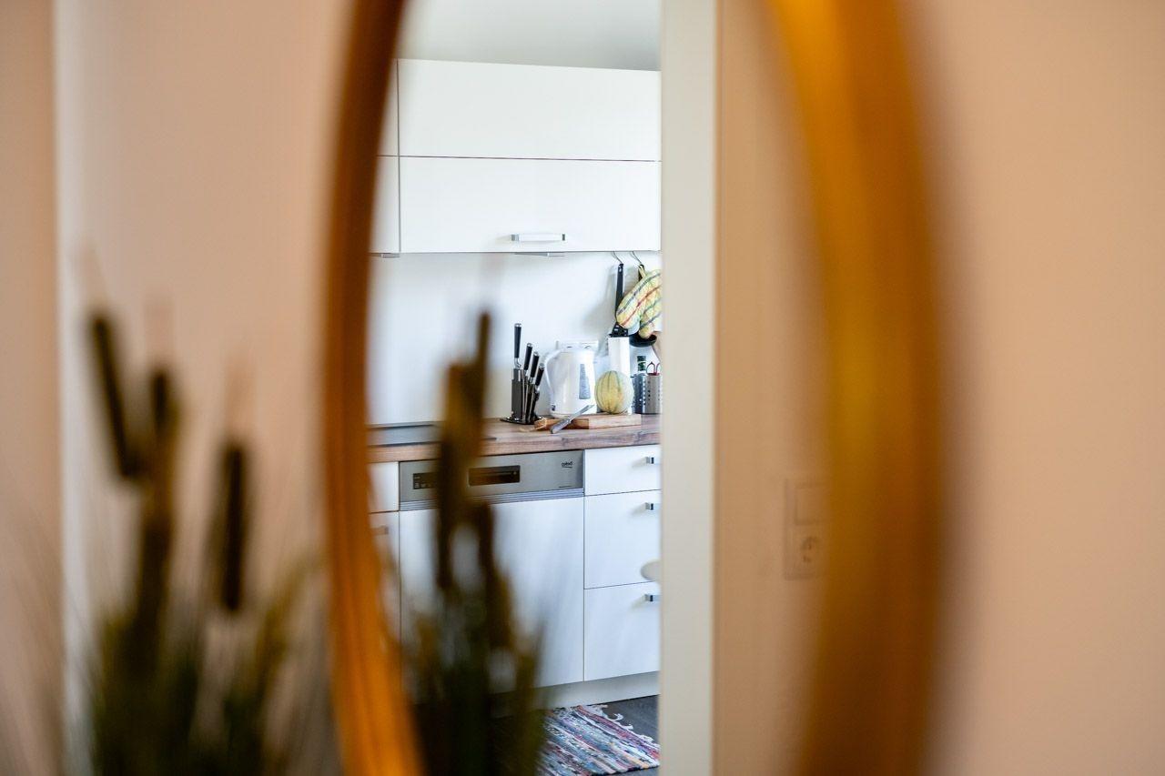In dieser charmanten Ferienwohnung erwartet den Gast ein durchdachtes Raumkonzept, das sowohl Funktionalität als auch Komfort vereint. Die offene Küche ist mit modernen Geräten wie einem Geschirrspüler, Elektro-/Gasherd, Backofen und Kühlschrank ausgestattet. Eine Kaffeemaschine, Espressomaschine sowie ein Toaster runden das kulinarische Erlebnis ab. Der Wohnbereich mit Sofa und Sessel lädt zum Entspannen ein, während ein Esstisch für gesellige Abende bereitsteht.