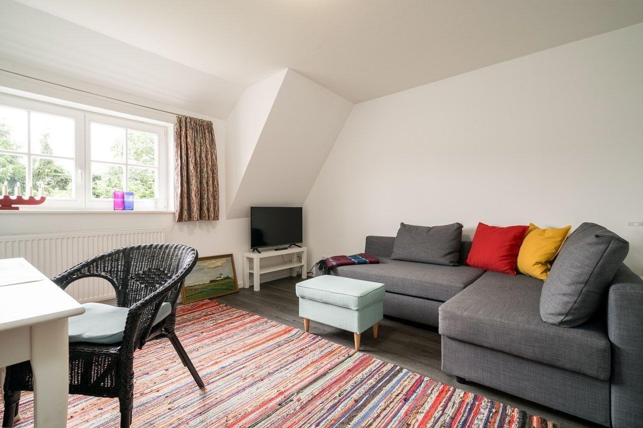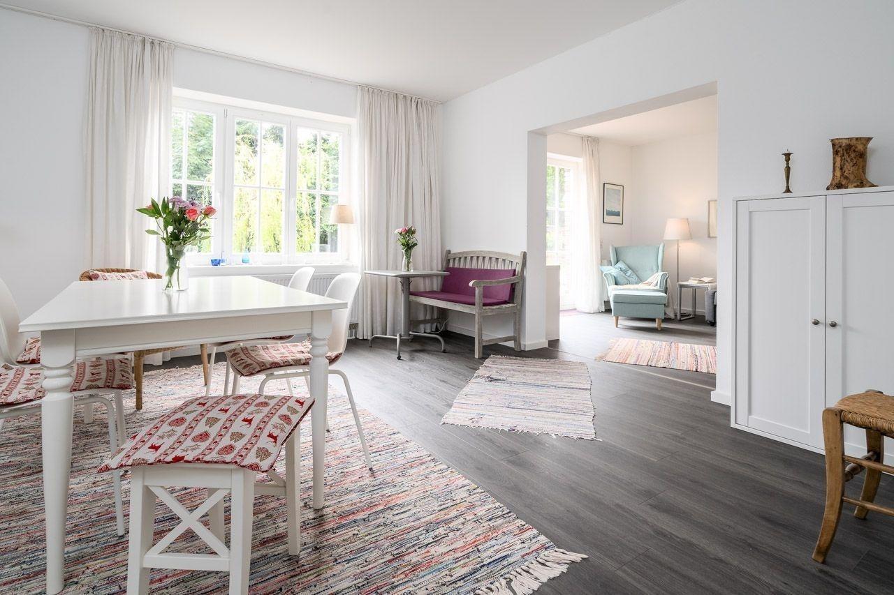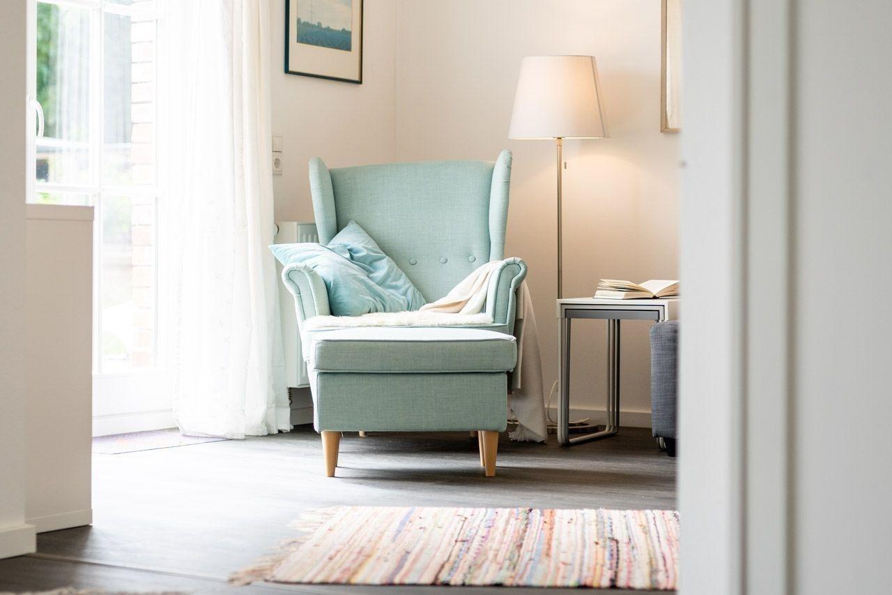 In dieser charmanten Ferienwohnung erwartet den Gast ein durchdachtes Raumkonzept, das sowohl Funktionalität als auch Komfort vereint. Die offene Küche ist mit modernen Geräten wie einem Geschirrspüler, Elektro-/Gasherd, Backofen und Kühlschrank ausgestattet. Eine Kaffeemaschine, Espressomaschine sowie ein Toaster runden das kulinarische Erlebnis ab. Der Wohnbereich mit Sofa und Sessel lädt zum Entspannen ein, während ein Esstisch für gesellige Abende bereitsteht.