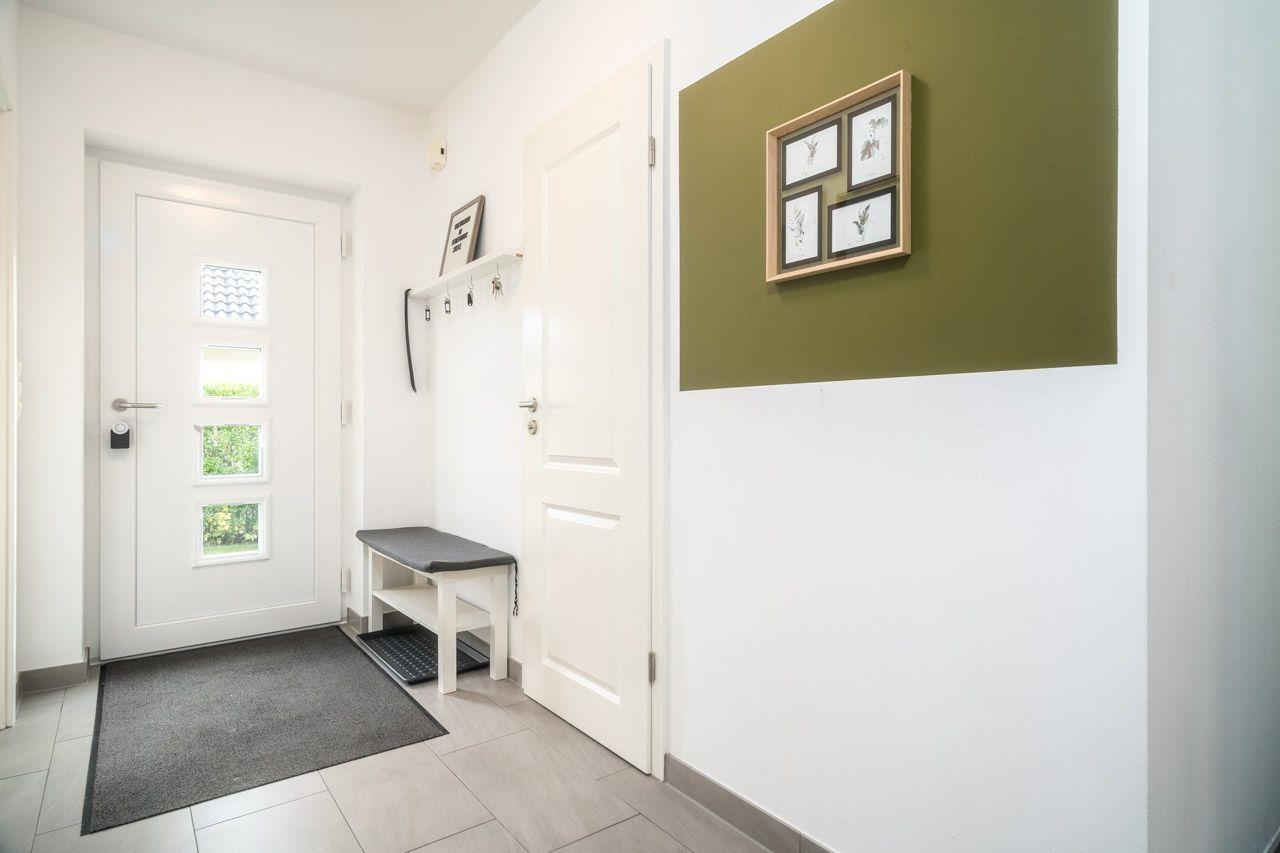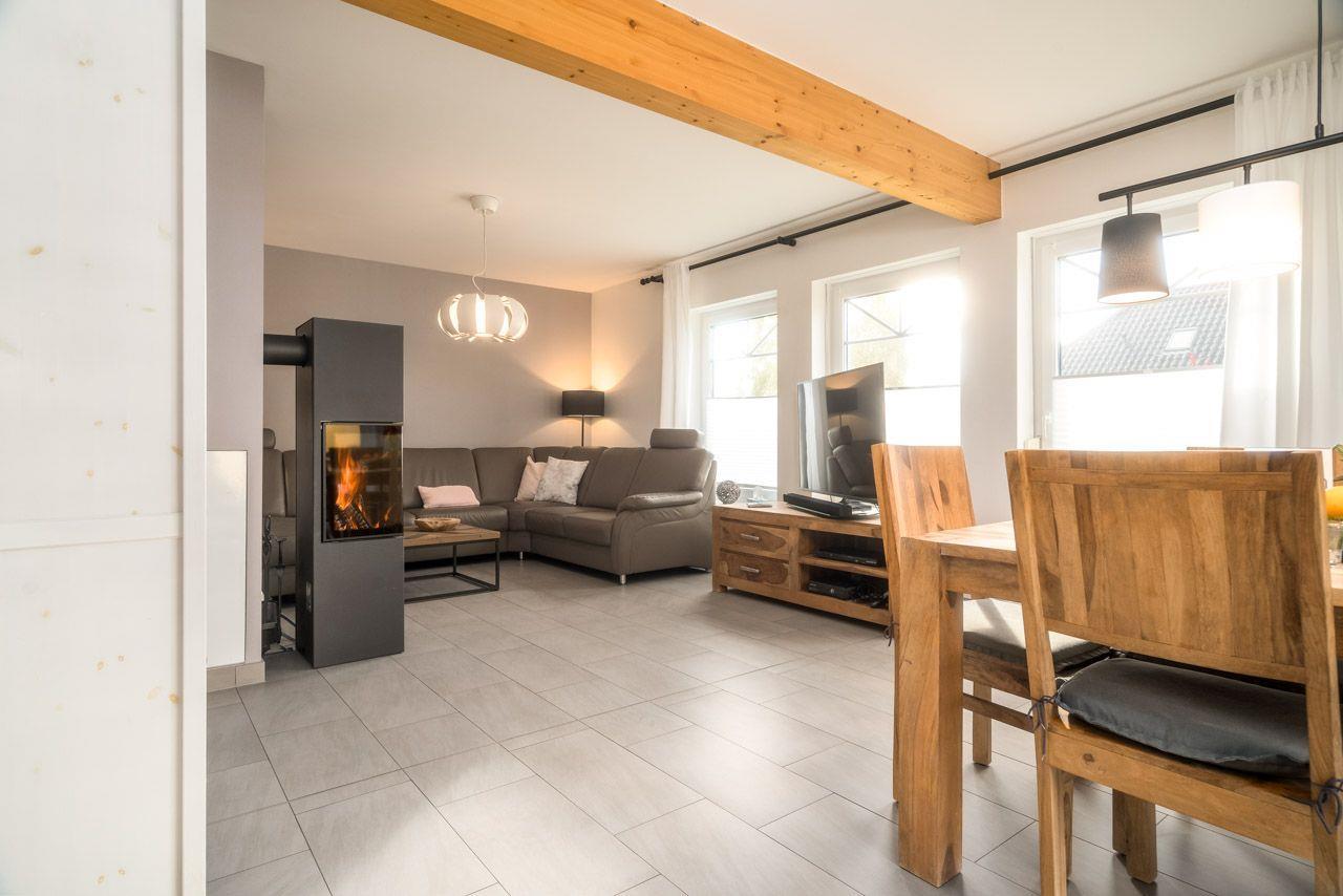 komfortabel auf einer Ebene mit etwa 115 m² Wohnfläche. Die gehobene Ausstattung, ein schöner Garten, zwei Terrassen, eine Gartensauna und ein Kamin sorgen für Behaglichkeit. Das Ferienhaus gliedert sich in zwei Bereiche – nach Süden ausgerichtet ein offen gehaltener Wohn- und Essbereich. Im nördlichen Teil befinden sich die Schlafzimmer, einschließlich der Bäder. In allen Schlafräumen befinden sich Fliegengitter und Rollläden. Für Ihren Aufenthalt stehen 2 Kanus und auch die Sauna im Gartenhaus steht Ihnen kostenfrei zur Verfügung.