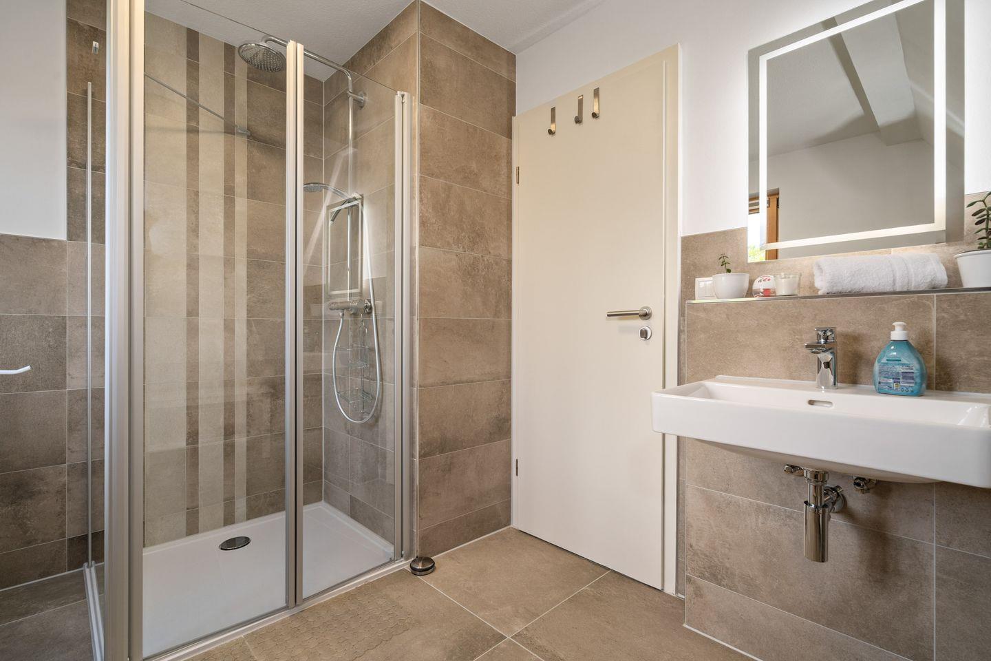 Diese charmante Ferienwohnung im Obergeschoß eines Einfamilienhauses (die untere Ebene wird nur genutzt wenn oben nicht belegt ist) überzeugt durch eine liebevolle Sanierung und moderne Einrichtung mit einem einladenden Ambiente. Sie umfasst einen großzügigen offenen Wohn- und Essbereich, einen Flur ein Schlafzimmer mit Doppelbett und ein zweites Schlafzimmer mit 2 Einzelbetten, ergänzt durch ein geräumiges Badezimmer mit Dusche. Das Haus ist optimal für vier Personen geeignet. Eine Terrasse mit kleinem Garten lädt dazu ein, die Natur in vollen Zügen zu genießen und bietet die Möglichkeit zum Grillen. Die Ausstattung des Hauses ist geprägt von vielen durchdachten Details, darunter WLAN, Fliegengitter, eine möblierte Terrasse, Kinderutensilien, ein Geschirrspüler sowie ein Parkplatz direkt am Haus. Das Haus wurde komplett neu modernisiert, liebevoll saniert und hochwertig ausgestattet, wodurch es zu einem besonders attraktiven Angebot wird.