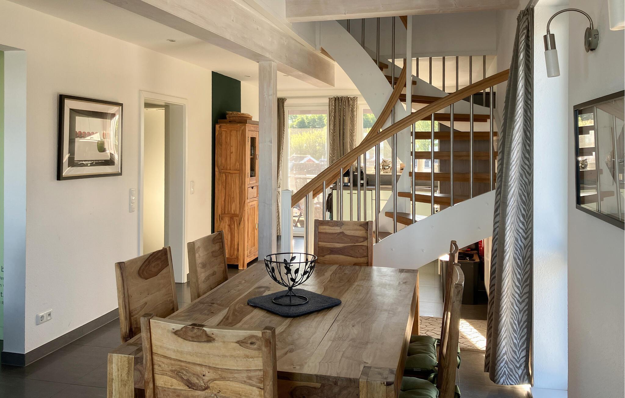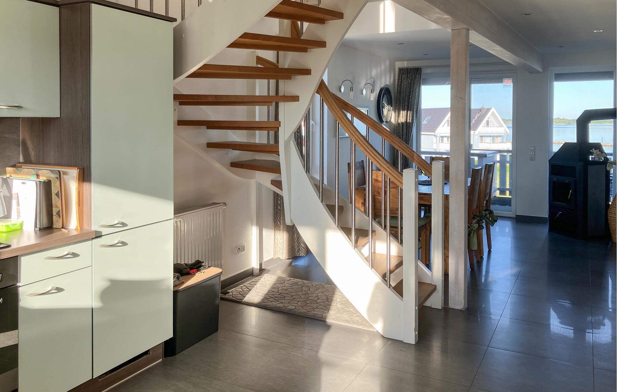Falls das Wetter einmal nicht mitspielen sollte, können Sie es sich im lichtdurchfluteten Wohnzimmer vor dem Kaminofen gemütlich machen. Hier befindet sich ebenfalls das Schlafsofa. Die offene Küche ist vollständig ausgestattet und verfügt über alle Annehmlichkeiten für Ihren Urlaub. Das großzügige Duschbad ist mit einer Whirlwanne ausgestattet, in der Sie herrlich entspannen können. Im oberen Badezimmer gibt es zusätzlich eine Sauna, die Ihren enstannten Urlaub abrundet.