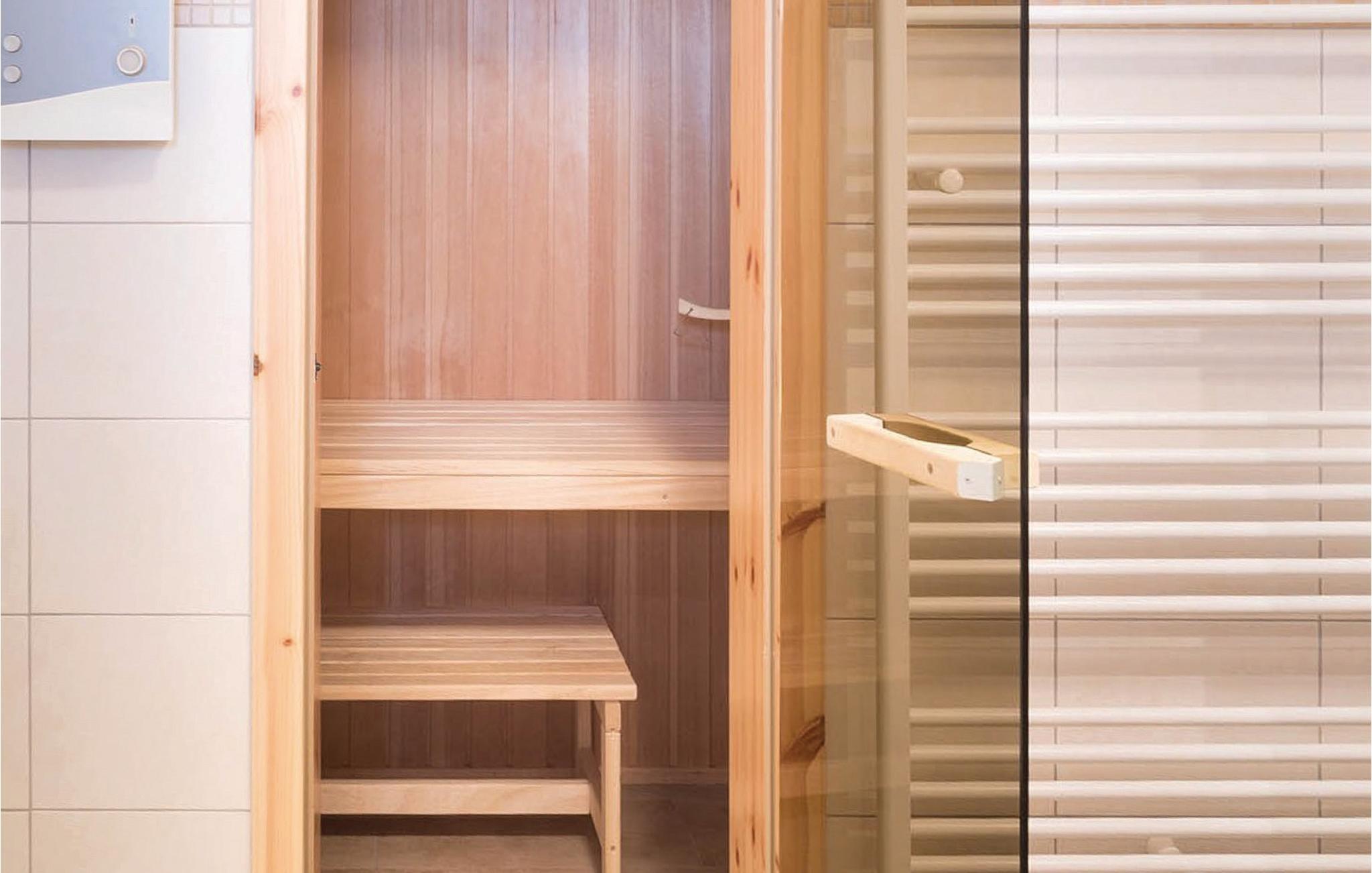In der Sauna können Sie sich nach einem langen Spaziergang an der Müritz wieder aufwärmen. Das Schlafzimmer mit Doppelbett verfügt über einen direkten Zugang zur Terrasse. Das zweite Schlafzimmer verfügt über zwei Einzelbetten. Der kombinierte Wohn- und Essbereich ist lichtdurchflutet und großzügig gestaltet.
