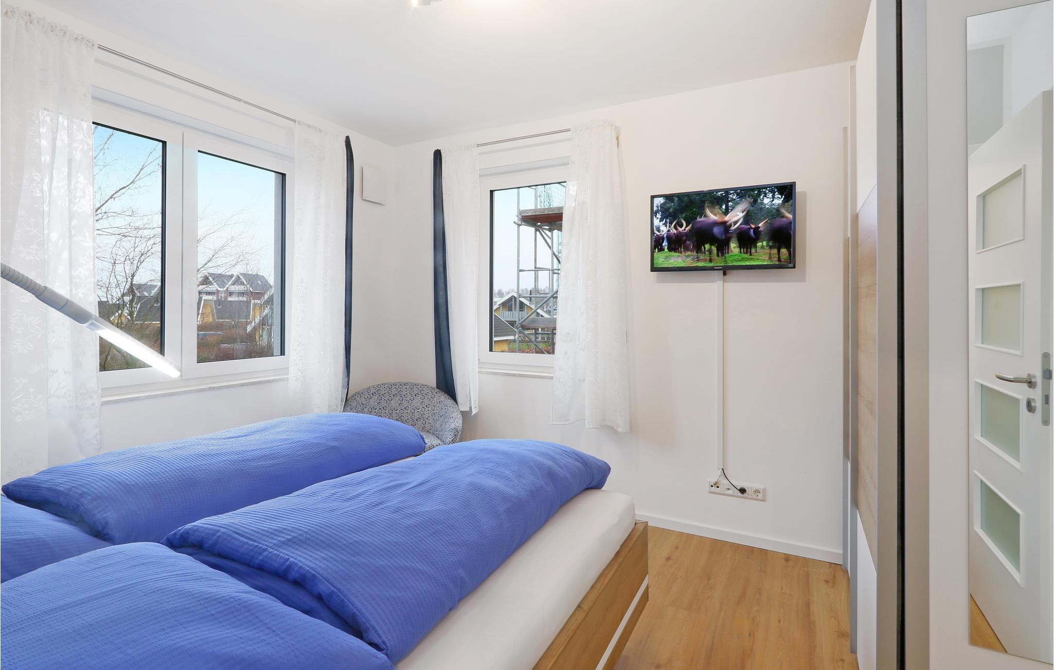 Die Ferienwohnung verfügt über ein Schlafzimmer mit einem Doppelbett. Auf dem Sofa im Wohnzimmer befindet sich der Kinderschlafplatz.