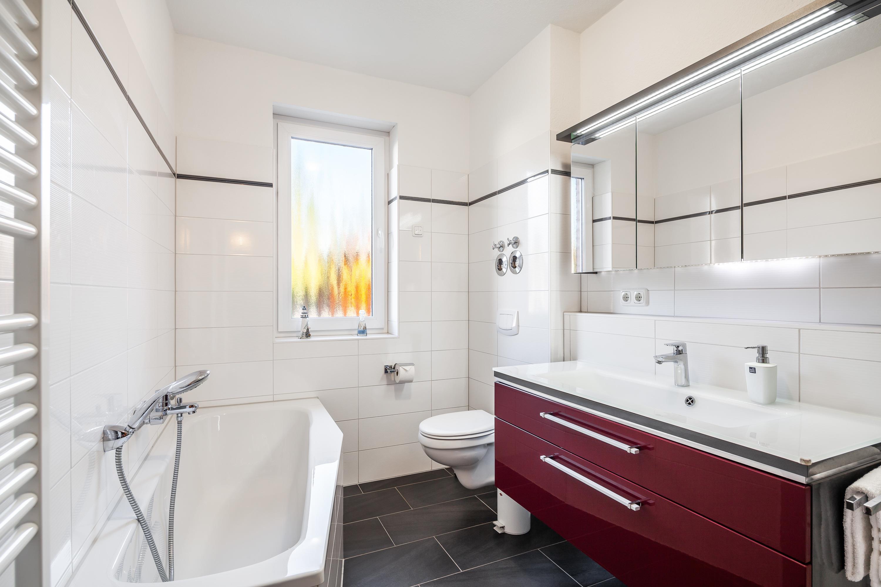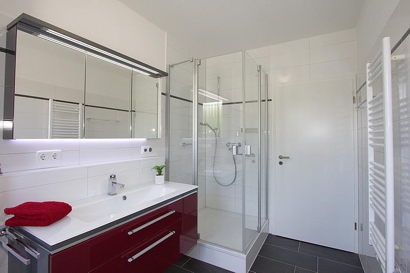 Die Fewo 'Bounty' , 71qm, mit einer großen Terrasse liegt im Erdgeschoss und verfügt über 2 Schlafzimmer. Die offene Küche in weiß/Lack mit hellgrauer Arbeitsfläche, ist mit allem Komfort wie Geschirrspüler, Kühlschrank mit Gefrierfach, Mikrowelle, Cerankochfeld, erhöhter Backofen, Granitspüle, Kaffeemaschine usw. ausgestattet. Der Esstisch aus grauer Eiche mit den bequemen Schwingstühlen bietet Platz für 4 Personen. Der gemütliche Wohnraum mit Kamin ist mit einer dunkelgrauen Leder-Komfortsitzecke und einem behaglichen Fernsehsessel ausgestattet. Ein 50 Zoll-Smart TV, Blu-Ray-Player, sowie Spiele, Bücher und Umgebungskarten sind vorhanden. Das schöne Badezimmer mit Tageslichtfenster ist in schwarz/weiß gehalten, mit einem rotem großen Waschtisch mit Glaswaschbecken, 1m x 1m Dusche und Badewanne, Fußbodenheizung und Radio ausgestattet. Der geräumige Flur und ein separater Abstellraum bieten viel Platz. Ein Schlafzimmer hat ein Doppelbett (180 x 200 cm) und einen weiteren 41 Zoll-Smart TV. Im anderen Schlafzimmer befinden sich 2 Einzelbetten mit einer Liegefläche von 90 x 200 cm. An allen Türen und Fenstern befinden sich elektrische Rolläden.