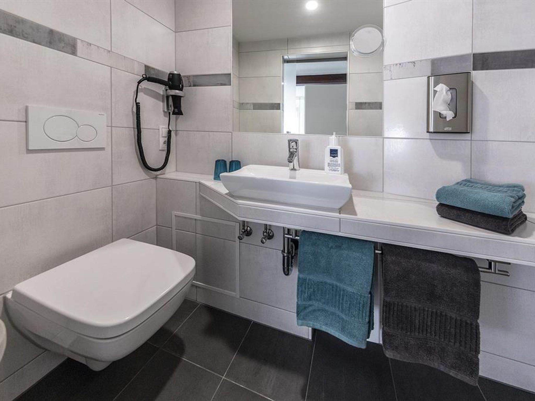 Im eigenen Badezimmer mit Dusche und WC werden Handtücher, Haartrockner sowie Kosmetikartikel zur Verfügung gestellt.
