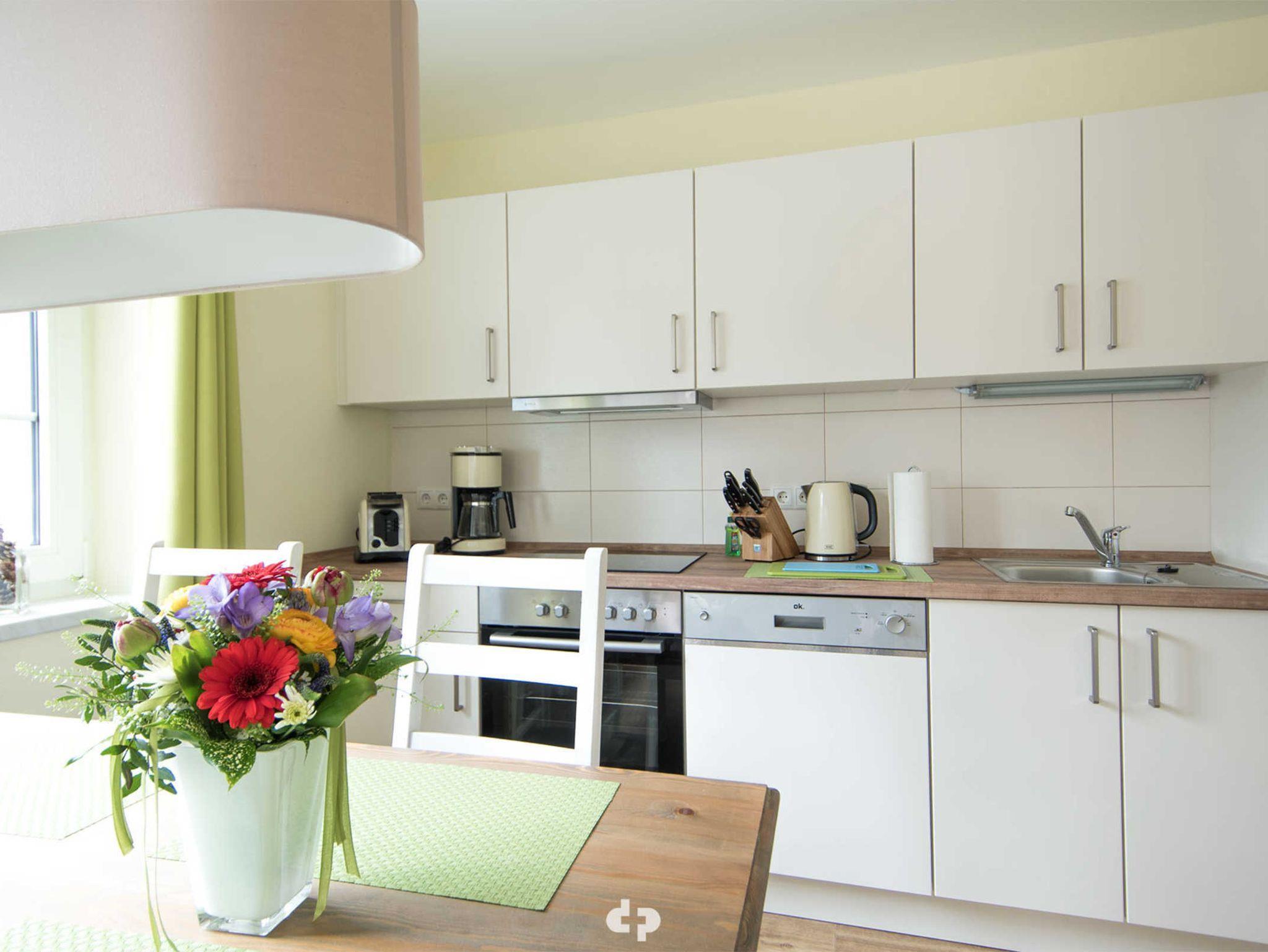 - Die Einbauküche ist mit Kühlschrank, Gefriermöglichkeit, Cerankochfeld, Backofen und Geschirrspüler ausgestattet. Kaffeemaschine, Wasserkocher und Toaster sind ebenso selbstverständlich wie ausreichend Geschirr und Besteck. Im Schlafzimmer, ausgestattet mit einem Flachbild-TV, erwarten Sie ein Doppelbett sowie ein Kleiderschrank mit genügend Stauraum. Das Duschbad ist mit einem Waschtisch und einer geräumigen Dusche ausgestattet.