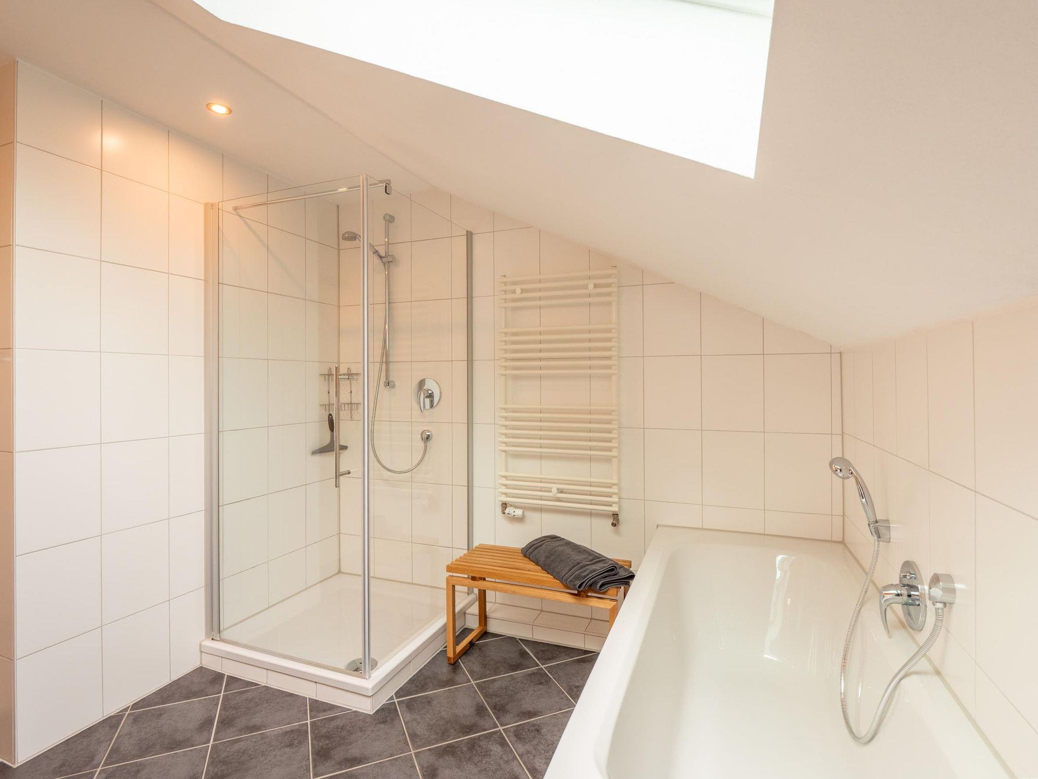 Die Wohnung besitzt einen großzügigen Wohn- und Essberreich mit Zugang zum Südbalkon. Außerdem steht eine moderne und gut ausgestattete Küche mit Elektroherd, Backofen, Kaffeemaschine, Wasserkocher, Toaster und Spülmaschine zur Verfügung. Das große Bad ist mit einer Dusche und Badewanne ausgestattet. Die Gäste finden in zwei getrennten Schafzimmern Platz.