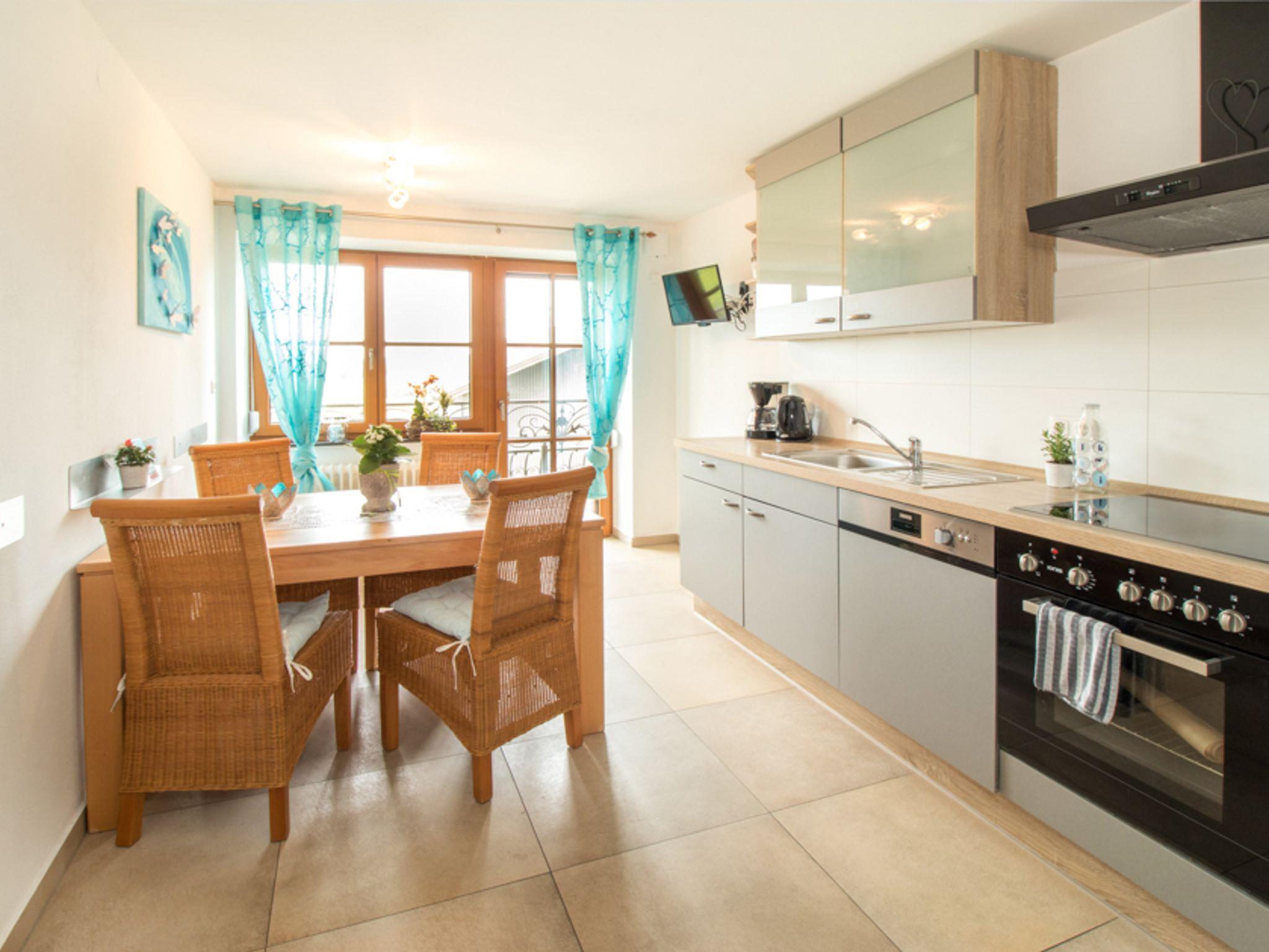 Unsere gemütliche großräumige Ferienwohnung ist mit zwei Schlafzimmern, Küche, Bad (Dusche und WC) und Balkon mit Blick auf die Ratzinger Höhe ausgestattet. Jede Ferienwohnung enthält eine Kinderspielecke und Babyausstattung. Abwechslung bei Regenwetter bietet auch unsere allgemein zugängige Verkleidungskiste. Unsere Wohnungen sind Nichtraucherwohnungen. Es besteht die Möglichkeit auf dem Balkon zu rauchen.
