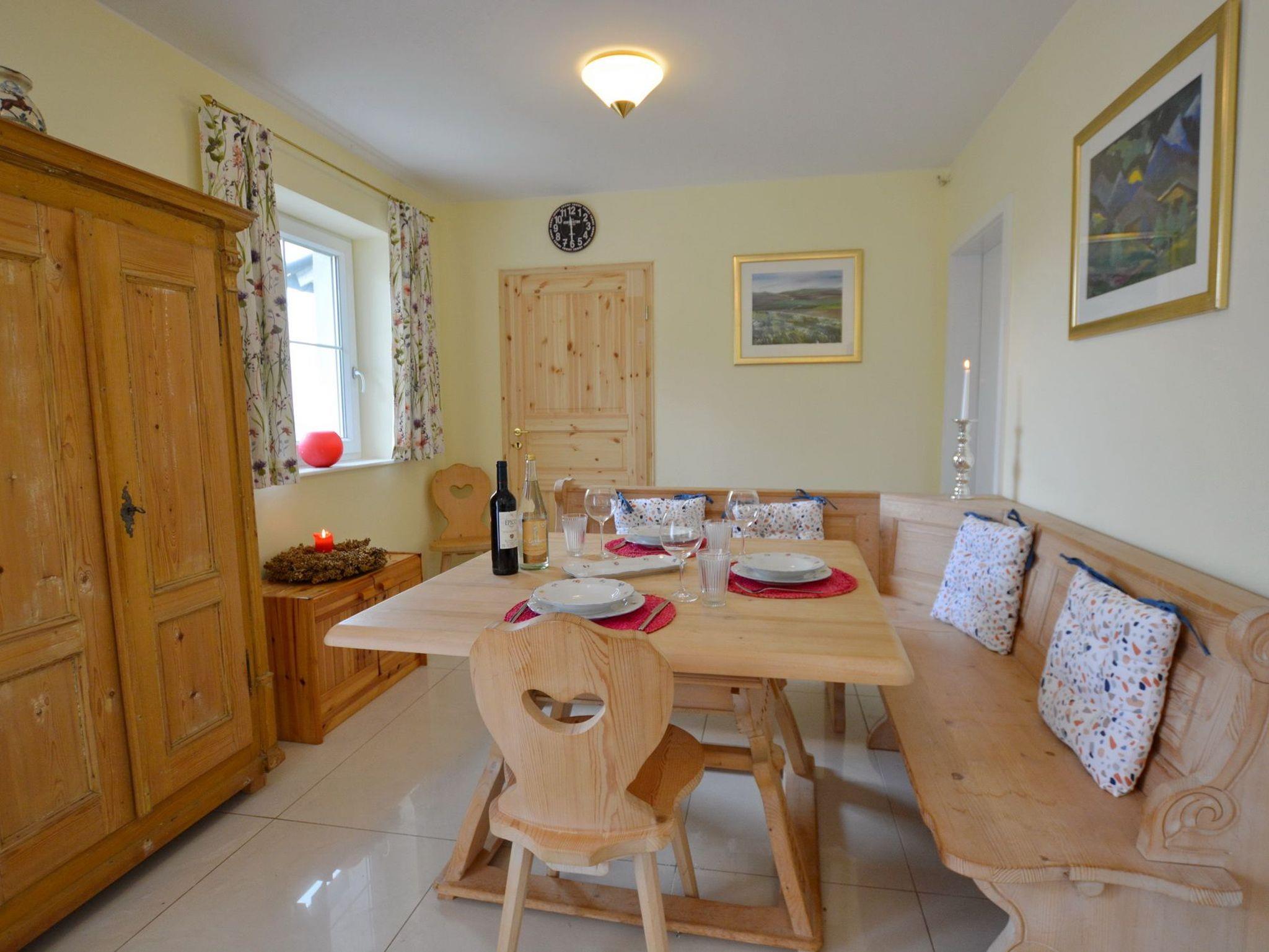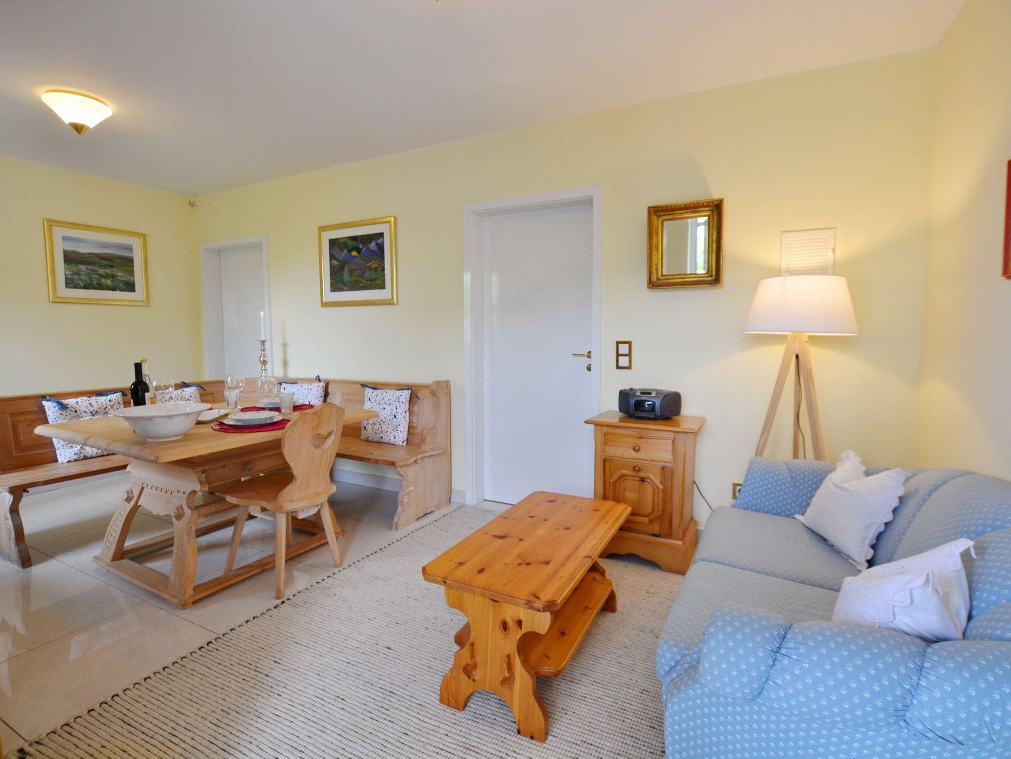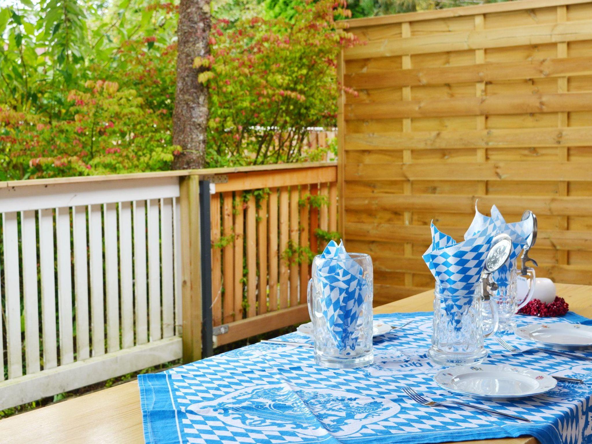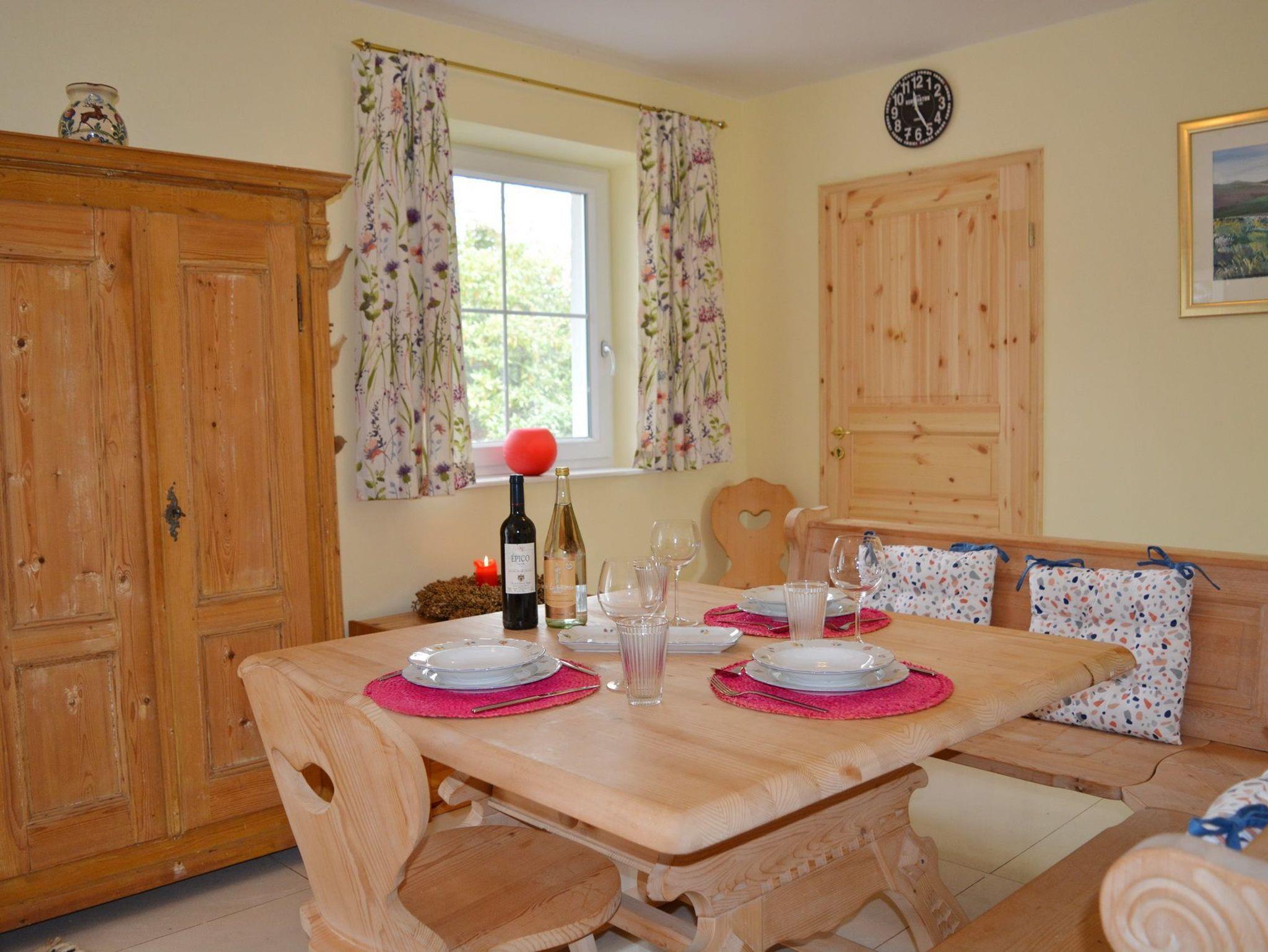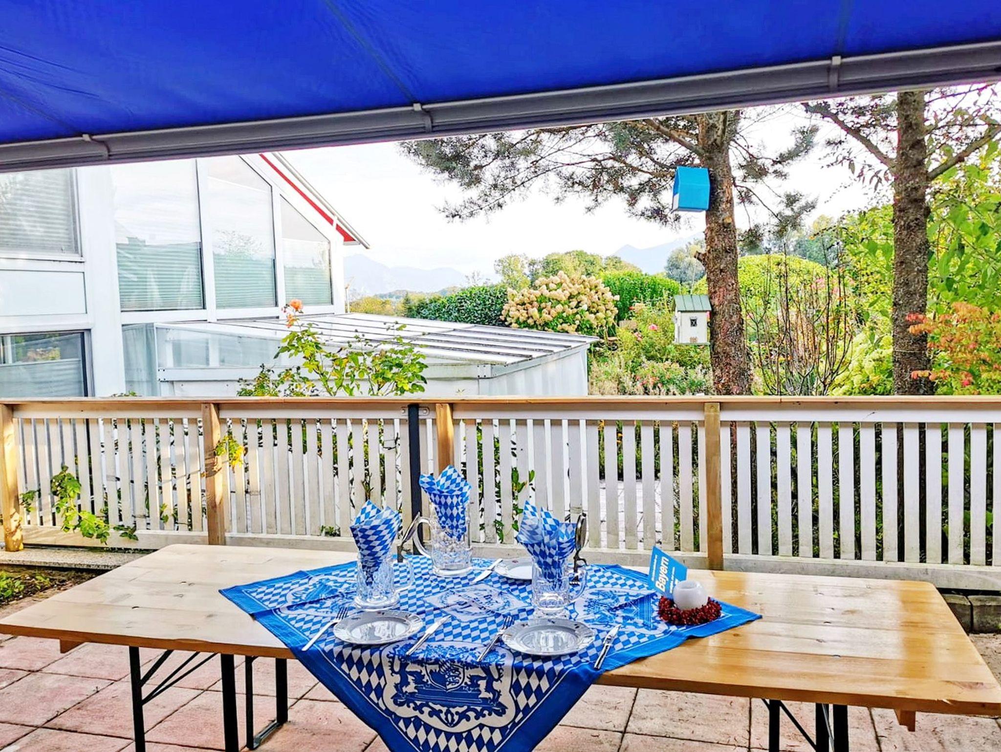 Ebenerdige Ferienwohnung mit bayerischem Charme, zwei Terrassen (Süd- [&] Nordseite) und Wohnbereich mit Essecke im Landhausstil. Holzgetäfeltes Schlafzimmer mit Doppelbett, TV und Kachelofen, Fußbodenheizung in fast allen Räumen. Voll ausgestattete neue Küche, Bad mit Dusche/WC, WLAN, Wäschepaket und Parkplatz inklusive. Da Anwesen ist komplett umzäunt, eine Rasenfläche ist nicht gegeben. Bis zu zwei Hunde sind hier herzlich willkommen, hierfür werden 15Euro/Nacht/pro Hund berechnet.