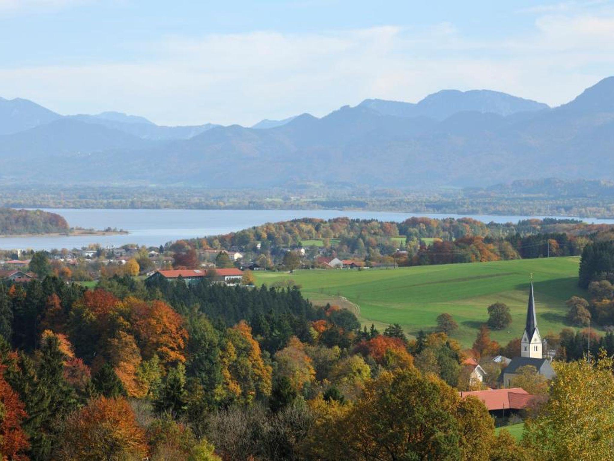 Der Lamplhof befindet sich auf der Ratzinger Höhe, mit traumhaften Panoramablick auf die Alpen. Wanderwege direkt ab Hof. Nicht weit von unserem Haus entfernt ragt der knapp 17 m hohe Aussichtturm Zwei Seenblick auf mit einem fantastischen Rundblick. Unser Haus mit ruhiger Lage empfiehlt sich, um den Alltagstress zu entfliehen und die Chiemgauer Landschaft zu genießen. Von der Ferienwohnung hat man einen weitläufigen Blick auf die Chiemgauer Alpenkette. Beim Haus befindet sich eine Liegewiese mit Gartenmöbel. Unser neuer beheizter Außenpool bietet Spaß und Entspannung bei traumhafer Aussicht. Auch bei schlechtem Wetter mit Poolüberdachung nutzbar. Natürlich haben wir auch an die Kleinen gedacht und einen kindgerechten Spielplatz, mit ebenerdigen Trampolin. Die Ferienwohnung Sternenstadl hat Almhüttencharakter, (Schlafzimmer mit Zirbenholzmöbel). Großräumige Wohnung mit Galerie und Südbalkon. Die Anzahl der Betten beträgt vier + mögliches Zustellbett für die fünfte Person. Frühstück ist auf Anfrage in der Ferienwohnung möglich. Leider können wir keine Haustiere akzeptieren, da es sich um eine Allergikerwohnung handelt.