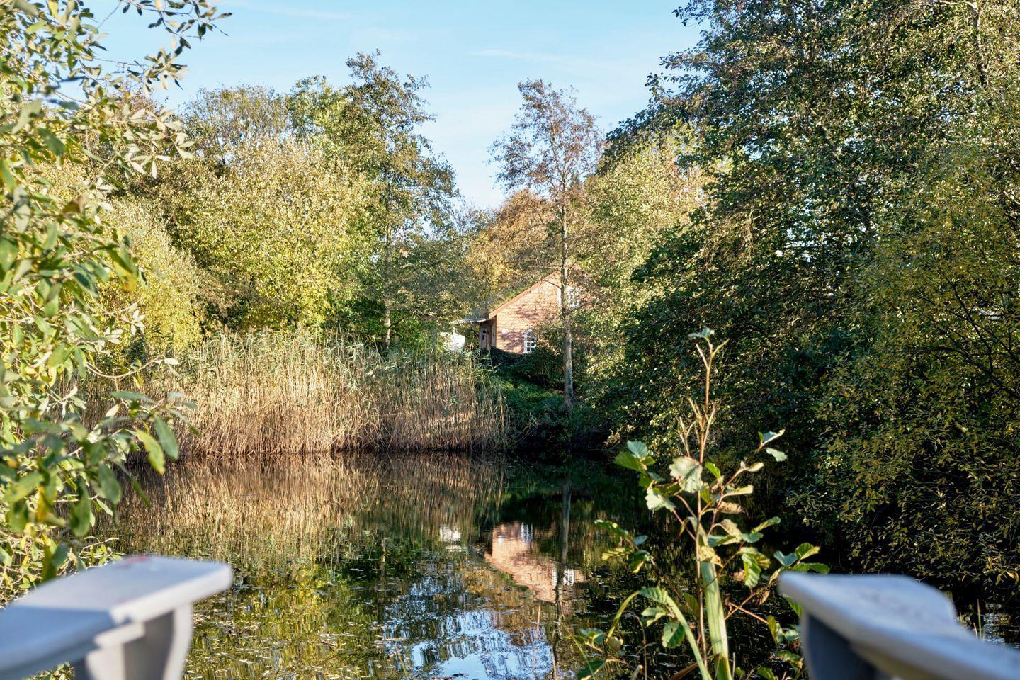 Das idyllische, 75 m² große Feriendomizil "Gjarshüs" für bis zu 6 Personen mit Blick auf ein kleines Gewässer steht auf einem ca. 5.000 m² großen Privatgrundstück.