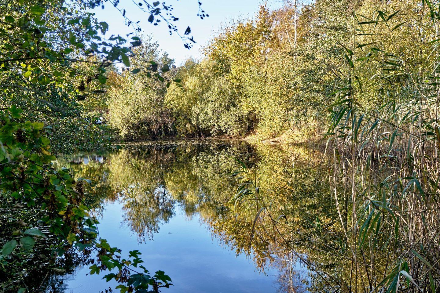 An das mit Maschendraht separat eingezäunte Grundstück schließt sich ein ca. 1.700 m² großes Biotop mit einem Gewässer an, das von einer mit Maschendraht verstärkten lebenden Hecke umgeben ist und gemeinsam mit den Eigentümern genutzt wird.