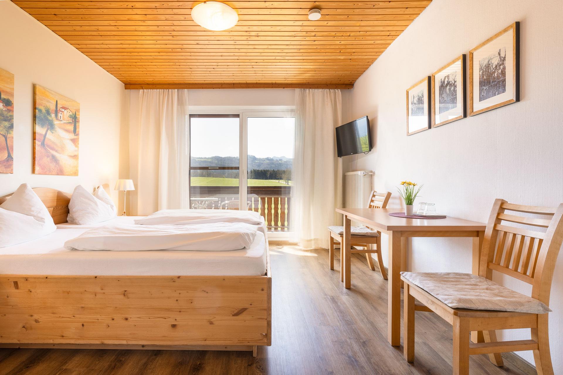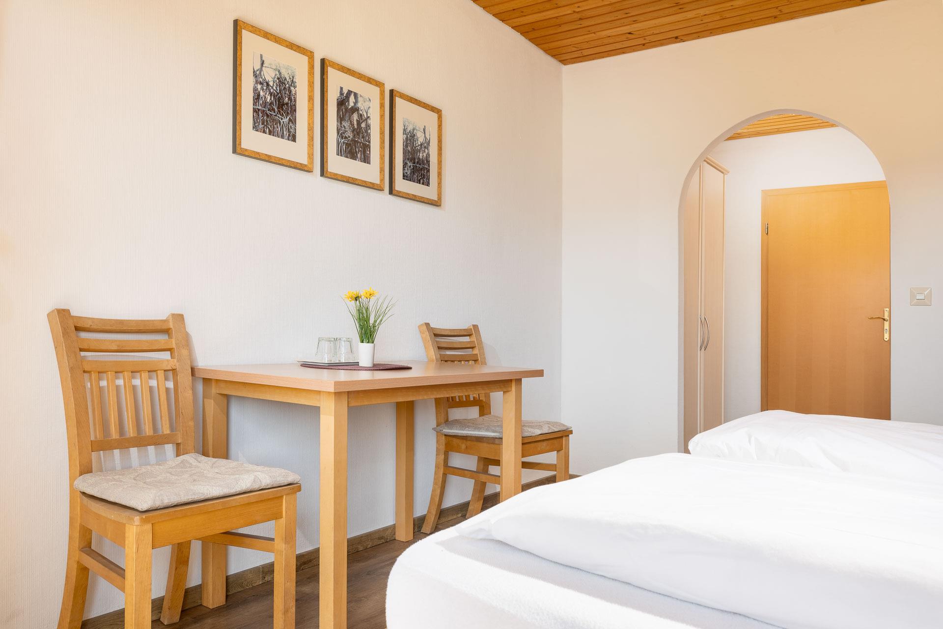 Genießen Sie Ihren Aufenthalt in unserem gemütlichen Doppelzimmer mit Südlage und herrlichem Blick auf die Berge vom eigenen Balkon aus.