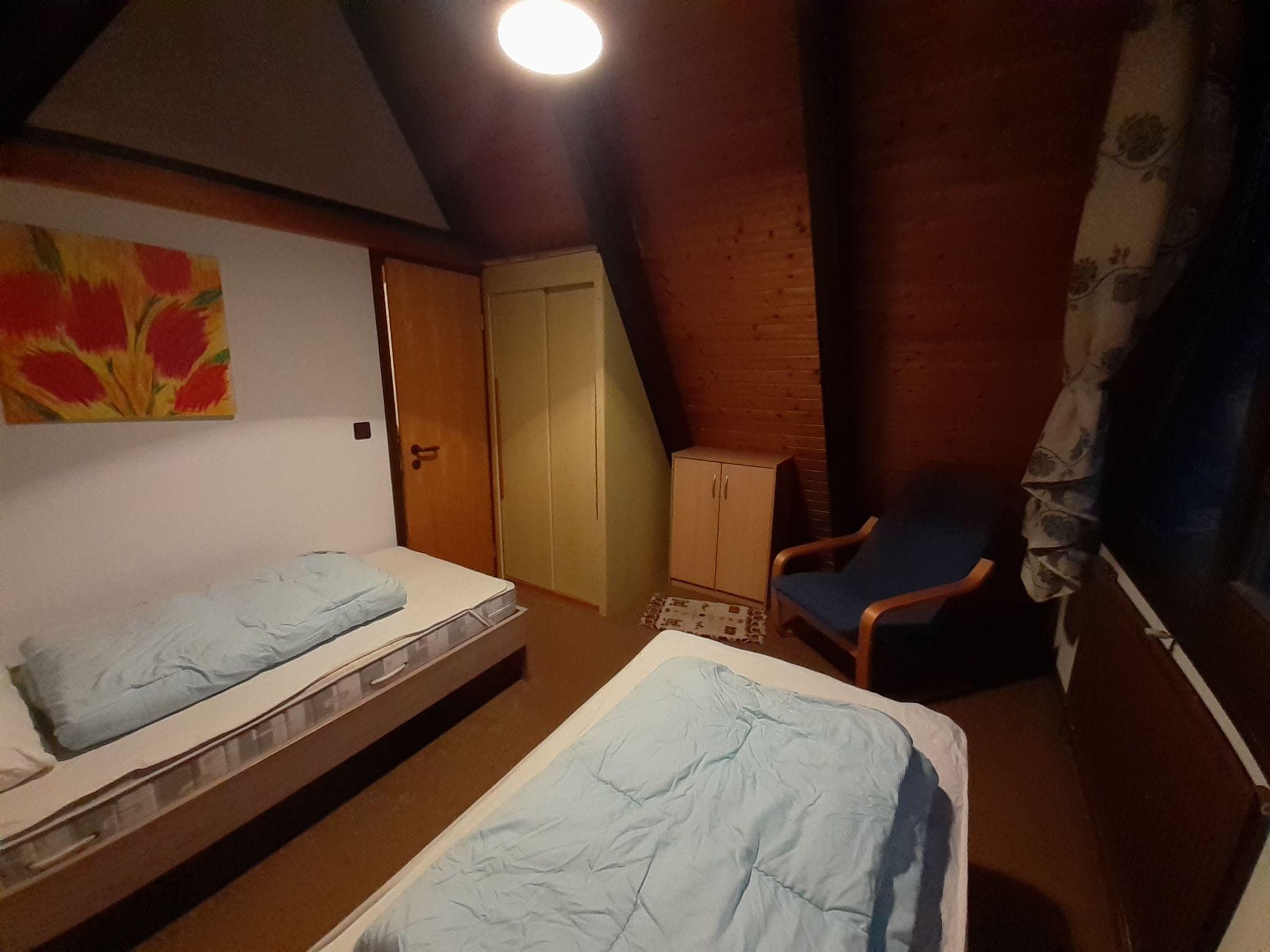Das Innere des Ferienhauses zeichnet sich durch eine gemütliche und einladende Atmosphäre aus. Zu den Annehmlichkeiten gehören neben einer kompletten Küche mit Mikrowelle, Kaffeemaschine, Toaster, Eierkocher und Wasserkocher auch ein Wohn- und Esszimmer, das mit Sat-TV und DVD ausgestattet ist. Für Unterhaltung sorgen ebenfalls Gesellschaftsspiele und Bücher. Die Schlafzimmer befinden sich unter dem charmanten Nurdach und bieten neben Platz für 3 Erwachsene und 1 Kind . Ein Badezimmer mit WC, Dusche und vorhandenem Föhn rundet das Angebot ab.