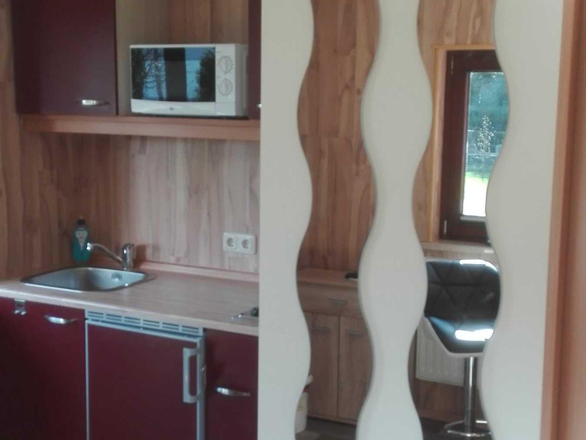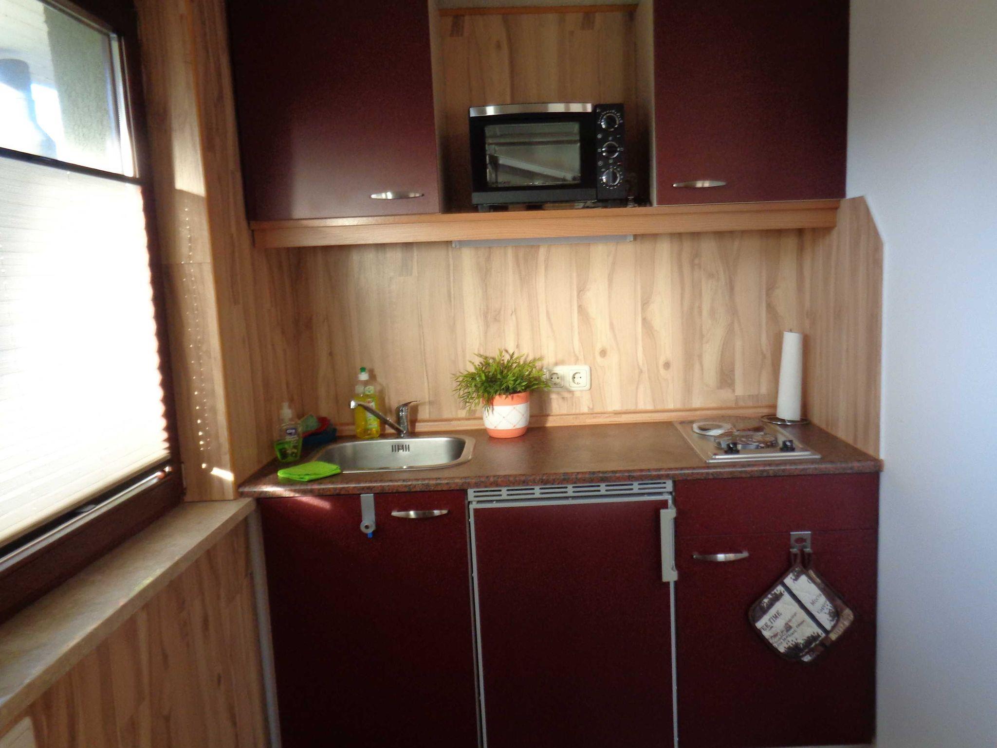 Kleine Ferienwohnung mit sep. Eingang auf eigenem Grundstück, in ruhiger, aber doch zentraler Lage im grünen mit Terrasse, Gartenmöbel und Grillmöglichkeit, ebenerdig., WLAN-kostenfrei, Kombination aus Wohn- und Schlafraum mit zwei Einzelbetten 90x200, moderne Einbauküche, Mikrowelle mit Grillfunktion, Kühlschrank, doppelte Kochstelle, Eierkocher, Toaster, Kaffeemasch. und Wasserkocher,TV , Handtücher und Bettwäsche kostenlos vorhanden, Küchenbartisch mit 2 Barhocker, Parkmöglichkeiten vorhanden