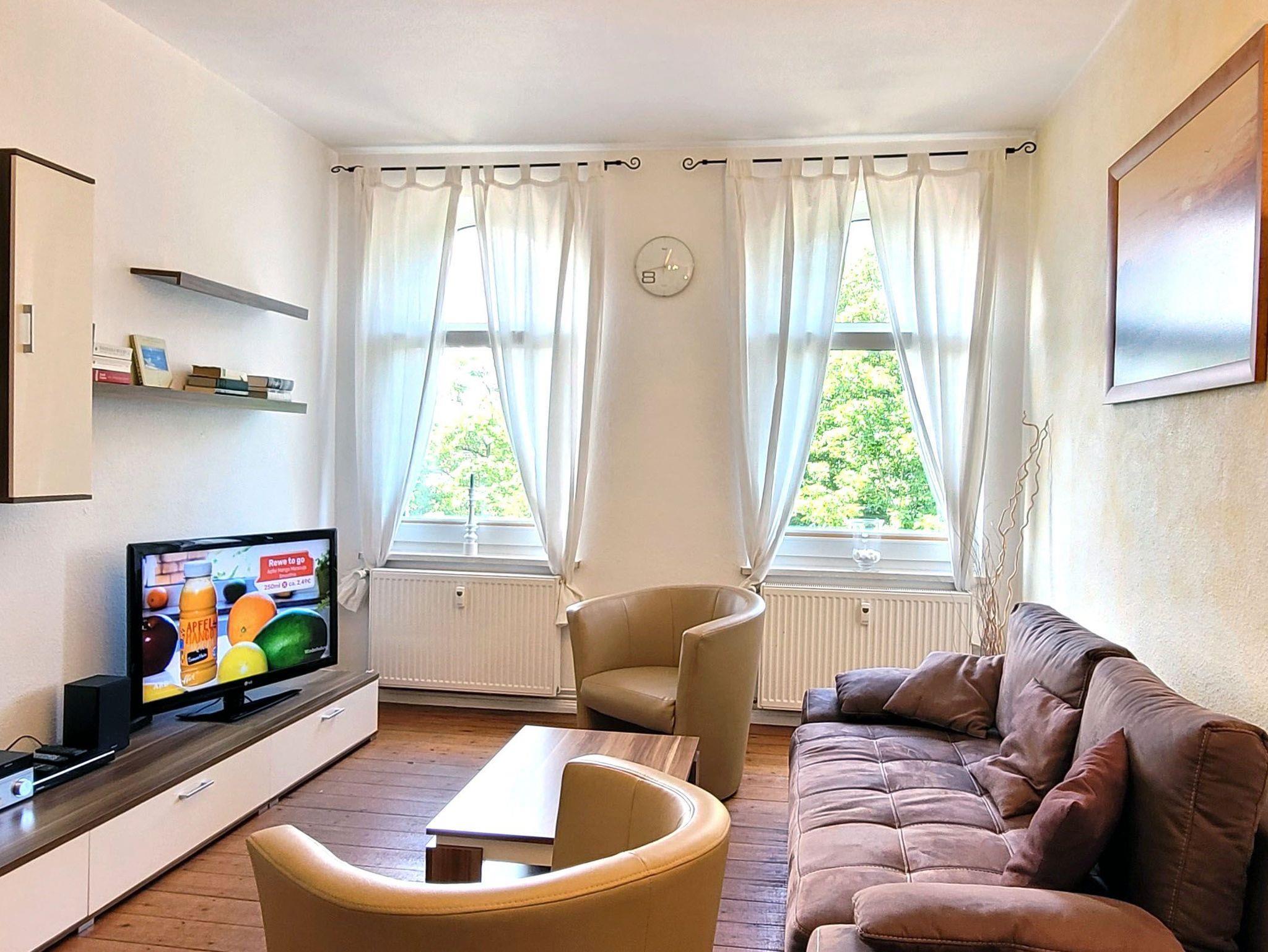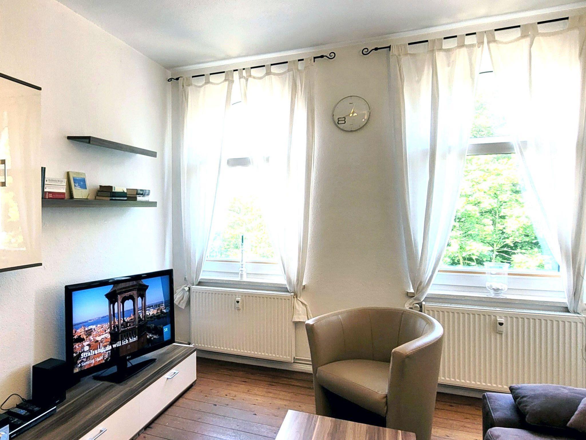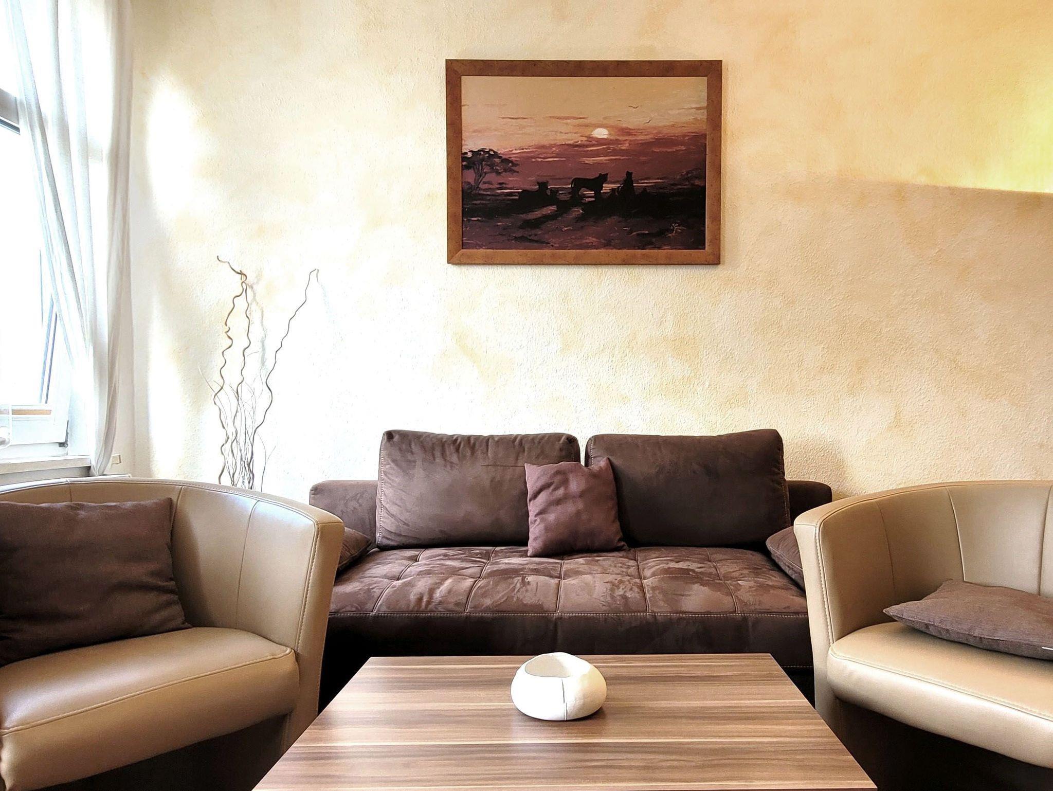Modern eingerichtete Ferienwohnung für 2 Personen. Nach Absprache können 2 weitere Personen auf dem Schlafsofa im Wohnzimmer übernachten. Im Wohnzimmer befinden sich ebenfalls eine gemütliche Sitzecke sowie ein Essbereich. Ihnen stehen ein 42 ? Flachbildfernseher im Wohnzimmer zur Verfügung und ein weiterer, etwas kleinerer Flatscreen im Schlafzimmer. Das Schlafzimmer ist zusätzlich mit Doppelbett und großem Schlafzimmerschrank ausgestattet.