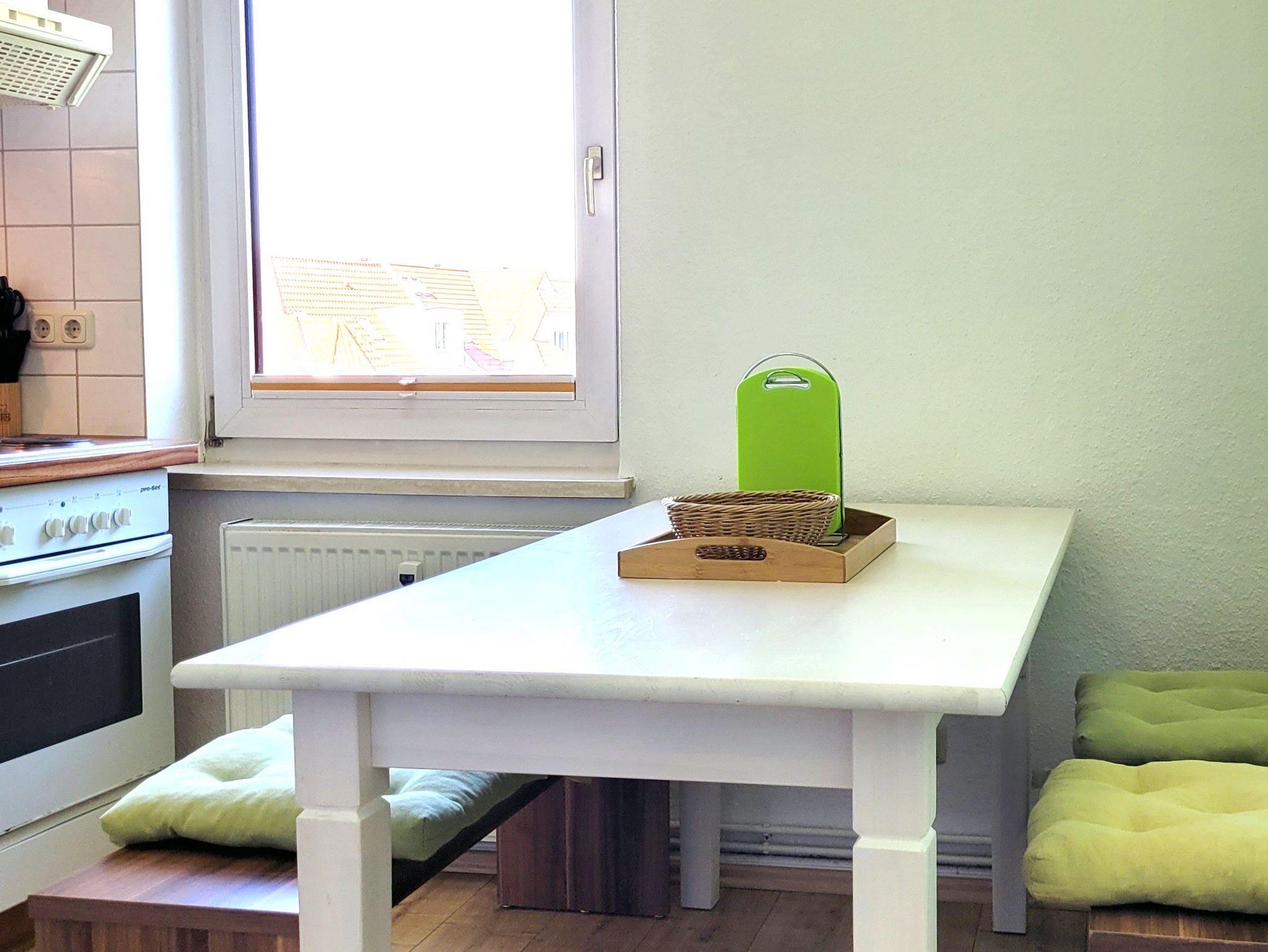 Die Küche ist voll ausgestattete mit Geschirrspülmaschine, Mikrowelle, Backofen, Kaffeemaschine, Toaster, Wasserkocher, Eierkocher, Brotschneidemaschine, Messerblock und 4-Plattenherd lädt zum Kochen und Beisammensitzen ein. Weiterhin bietet Ihnen diese Ferienwohnung ein Badezimmer mit Badewanne.