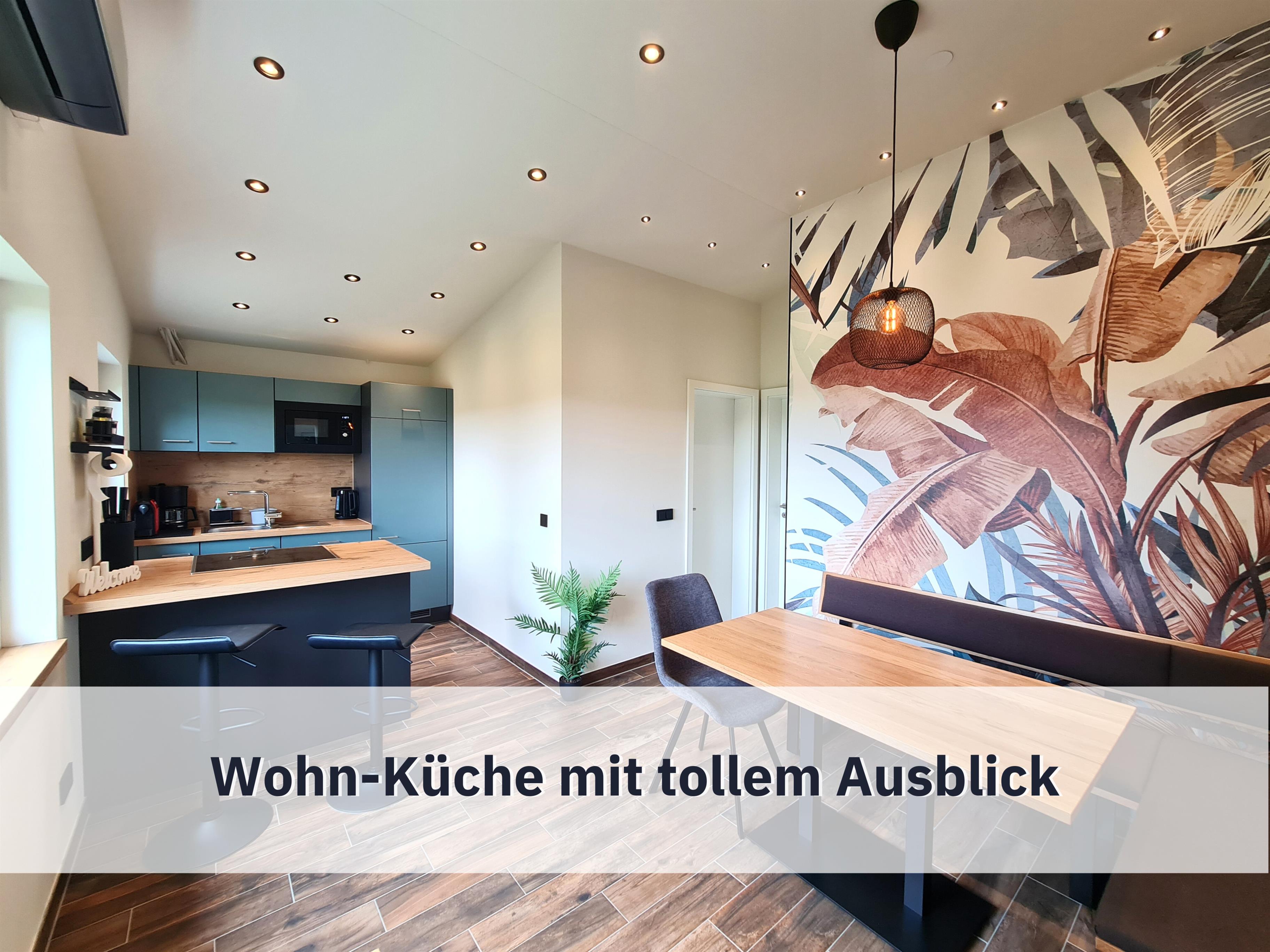 Mit tollem Ausblick auf Wiesen und Wälder starten Sie ihren Tag in der offenen modernen Wohn-Küche mit Kamin oder auf Ihrer Terrasse/ im Garten.