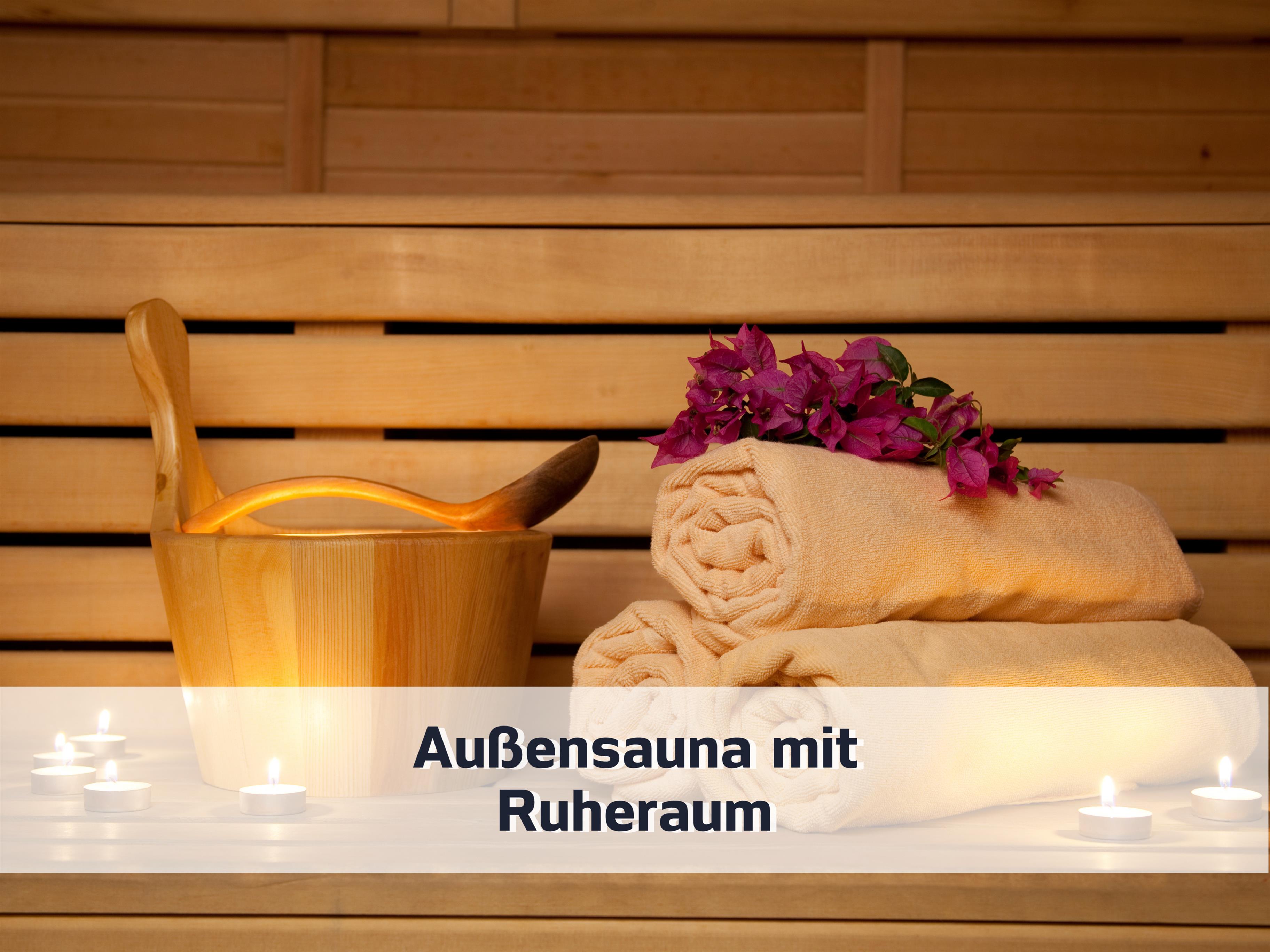 Zum weiteren Genießen finden Sie eine Außensauna mit Ruheraum.