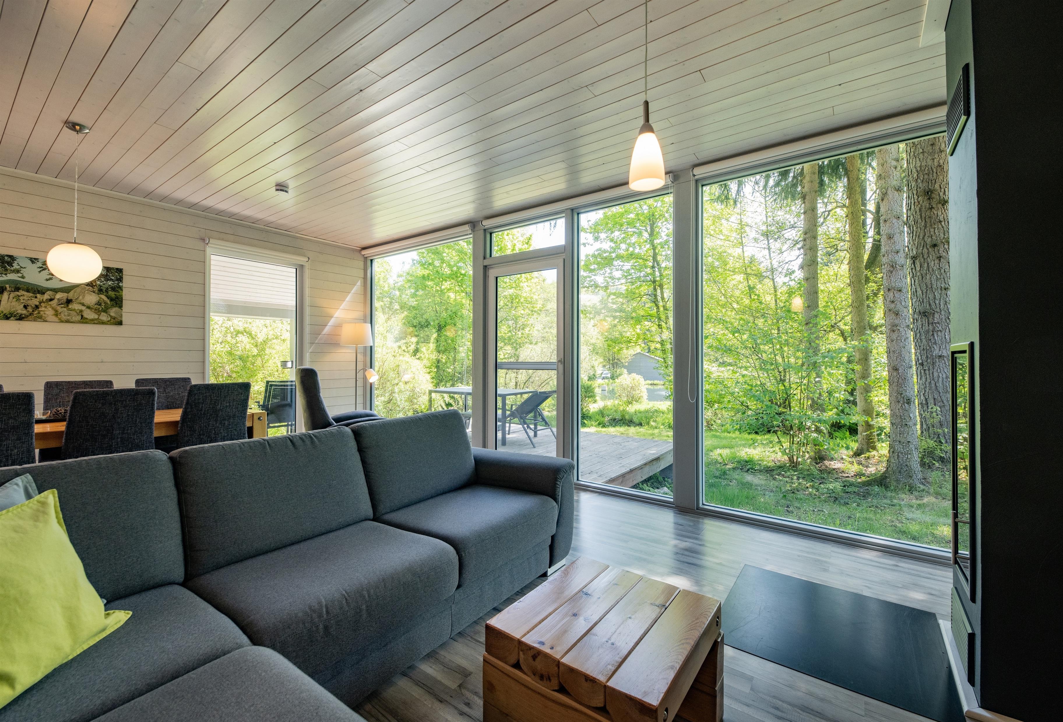 Das Ferienhaus mit einem lichtdurchluteten offenen Wohn- und Küchenbereich, zwei Schlafzimmern und einem Wellness-Bad mit Sauna bietet Ihnen auf 70 Quadratmetern ausreichend Platz für 4 Personen. Die 7 Meter breite Glasfront lässt die Natur beim Essen oder Relaxen teilhaben. In der kalten Jahreszeit vollendet das knisternde Kaminfeuer das Urlaubsfeeling.