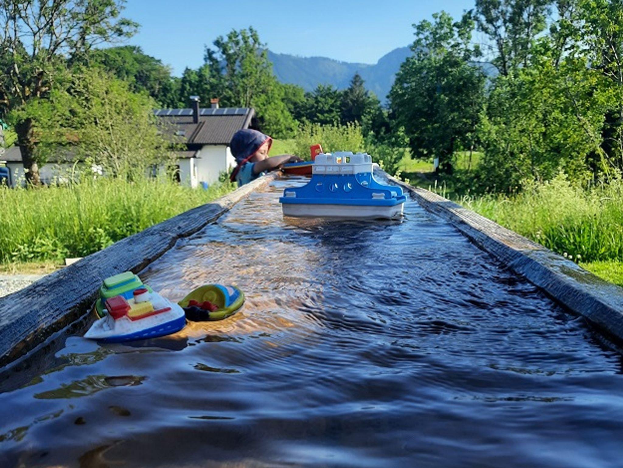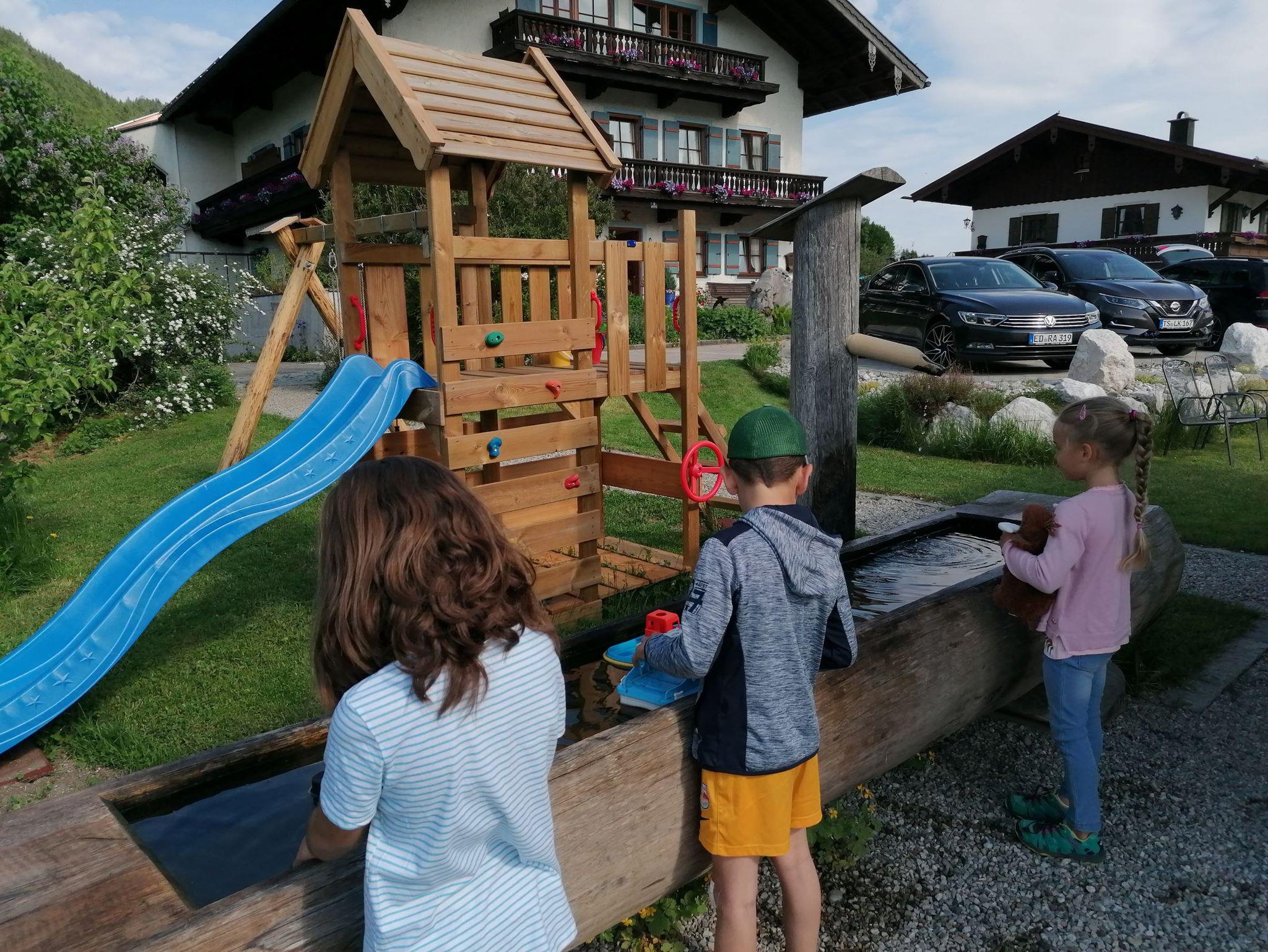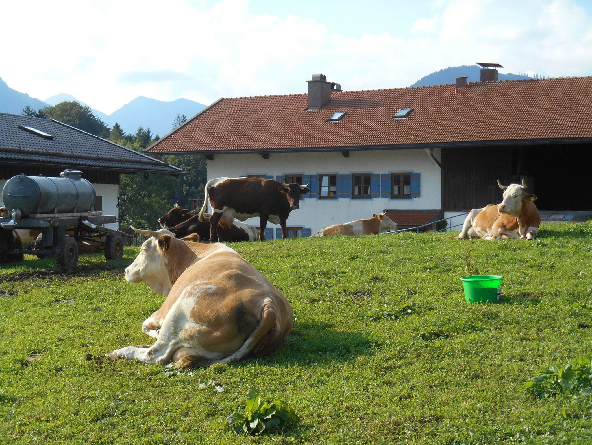 Erlebbarer Ruhpoldinger Bio-Bauernhof inmitten grüner Wiesen mit freiem Blick auf unsere Berge. Kinderspielplatz, großes Trampolin, Kinderfuhrpark und frische Milch und Eier vom Hof runden Ihren Urlaub auf dem Bauernhof ab. Auf der sonnigen Terrasse unserer Almhütte schmeckt die Brotzeit besonders gut. Haben Sie schon einmal beim Melken zugeschaut? Bei uns trägt der Melkroboter Gummistiefel.