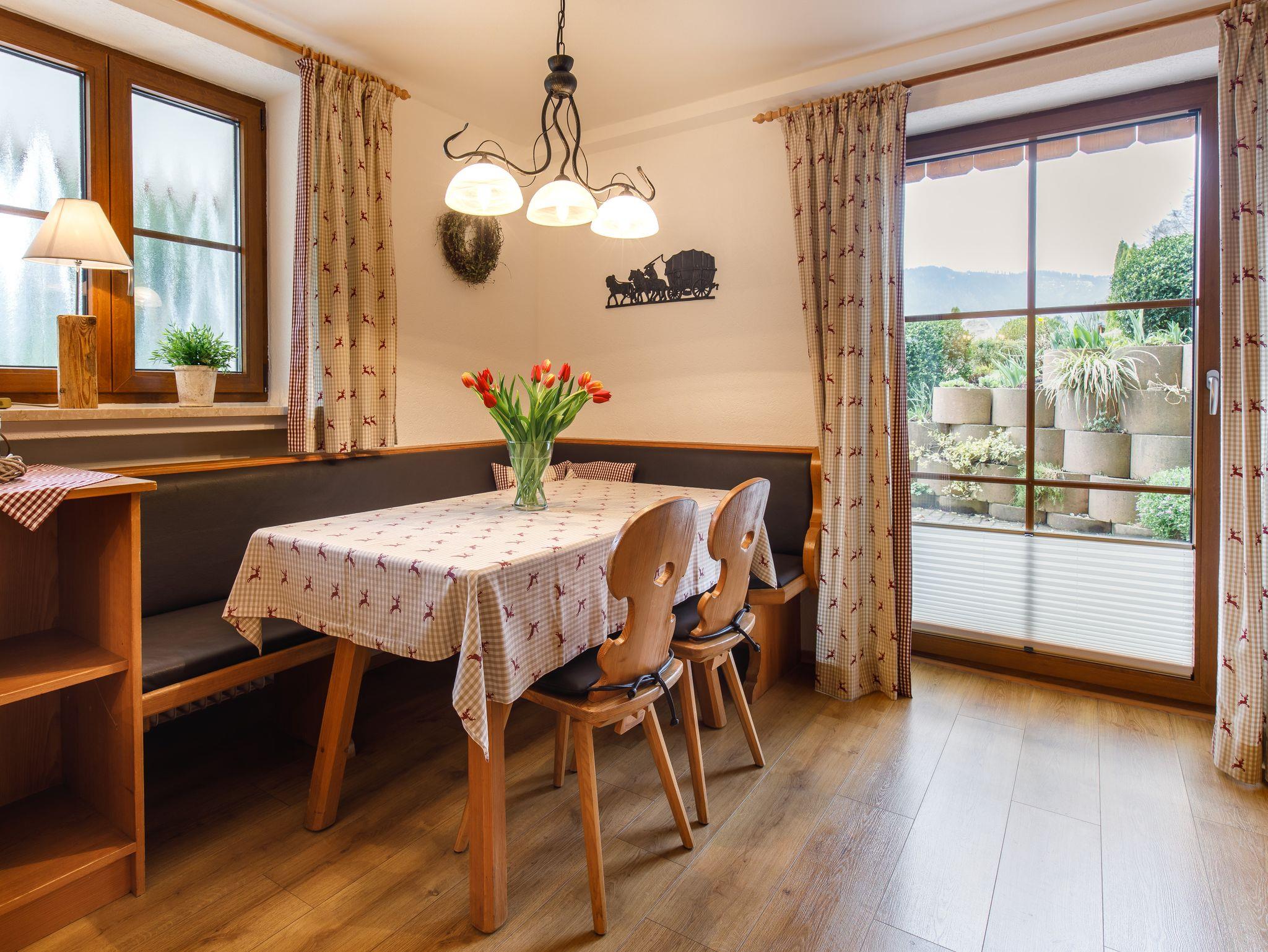 Lohener Hof - Ferienwohnungen Gastager, 1. Ferienwohnung Rauschberg, 55 qm, Terr., Küche, 1 Schlafzimmer, 1 Wohnschlafz.