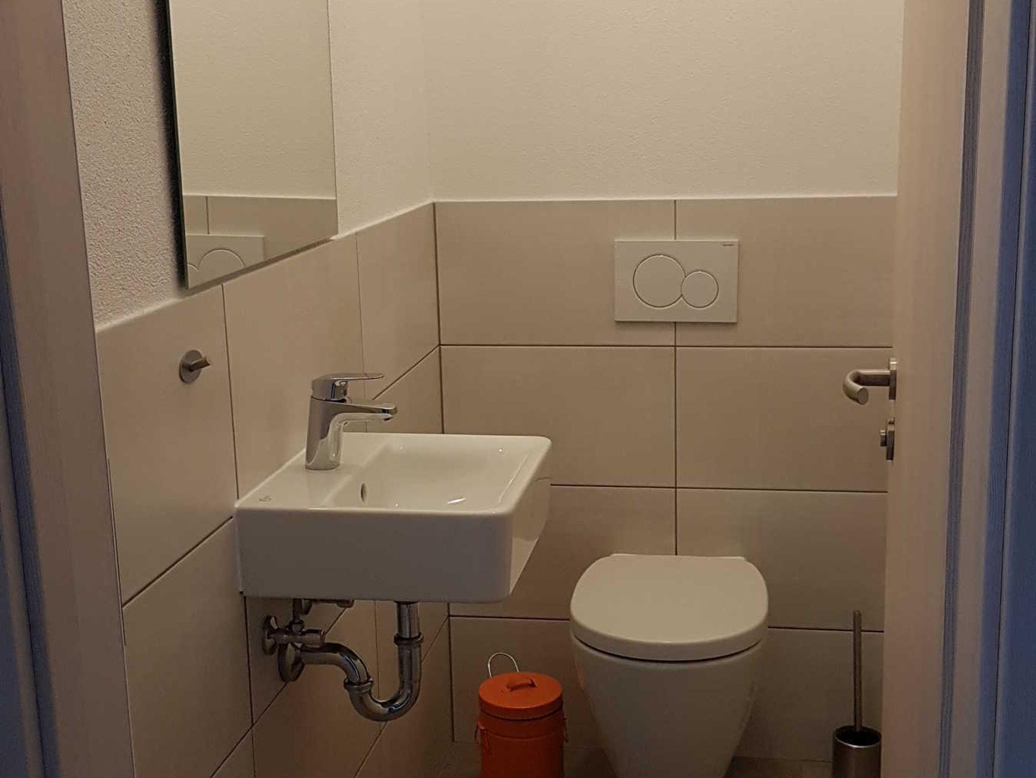 Mit ausgestatteter Küche (Back/Mikrokombination und Geschirrspüler), Wohn-/Essbereich und Bad mit WC im Erdgeschoss. Im 1. Obergeschoss befinden sich die Schlafzimmer mit einem WC.