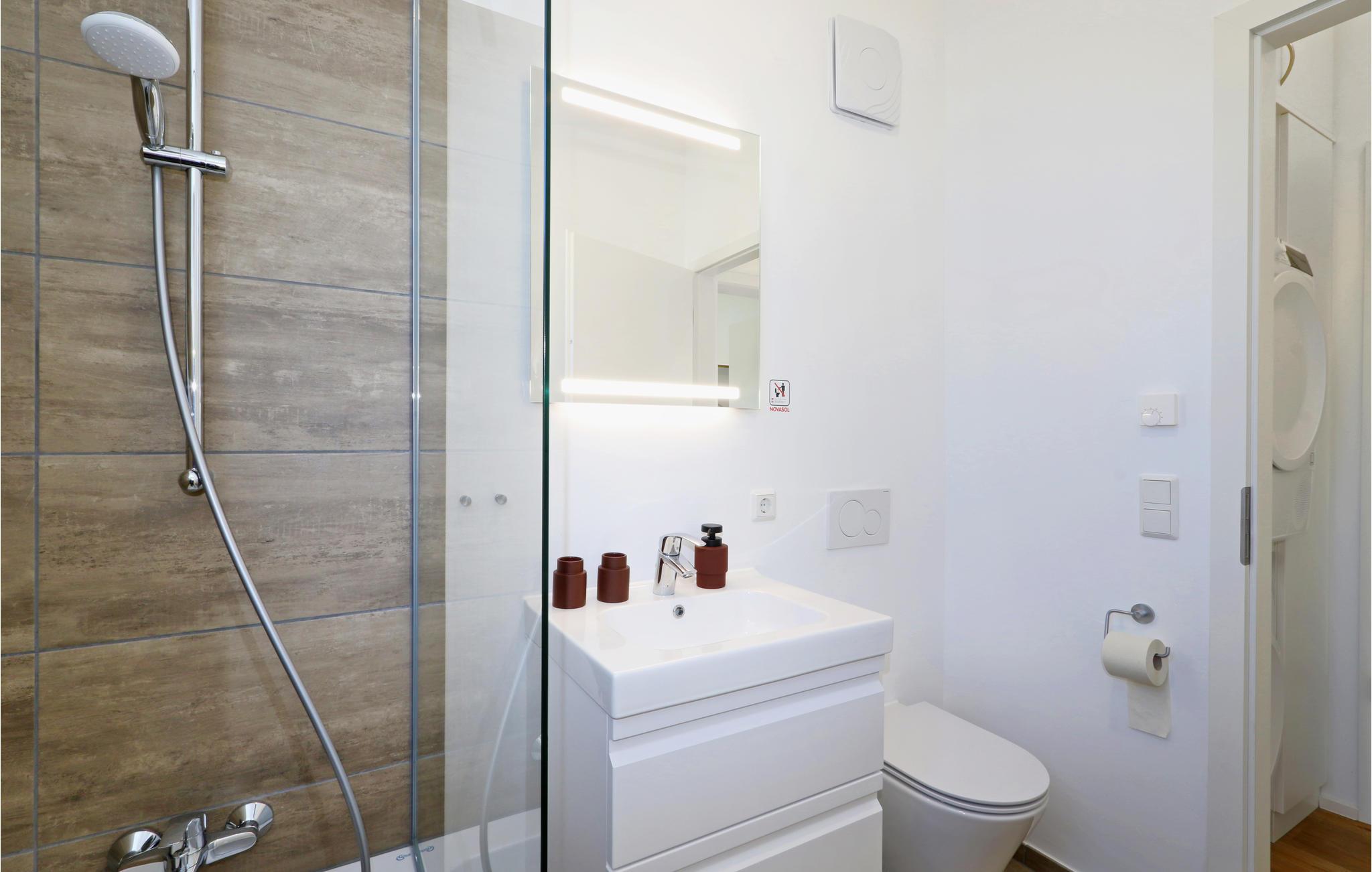 - WC mit warmem und kaltem Wasser, Dusche
