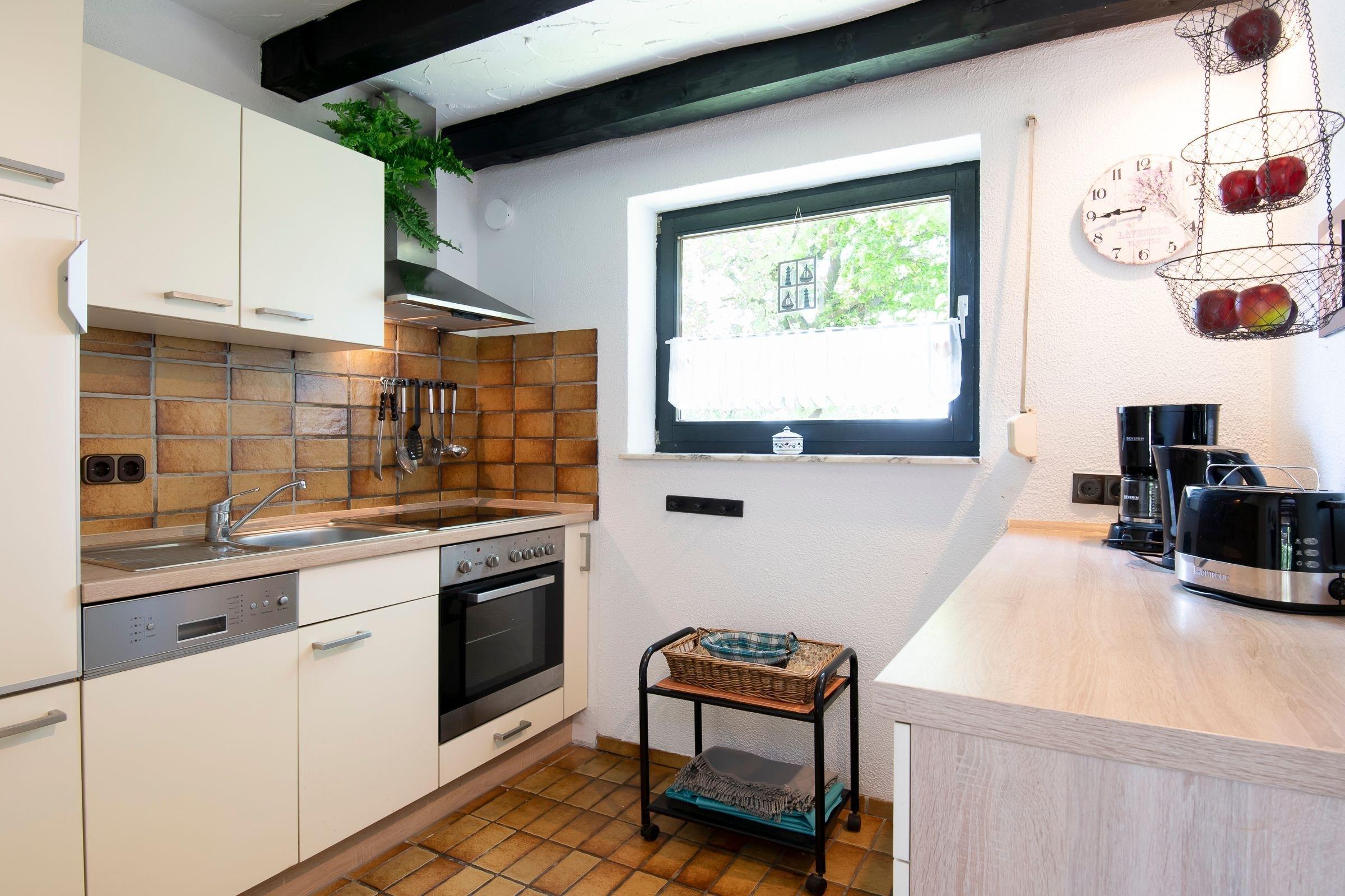 Es erwartet Sie ein eigener, nicht einsehbarer und eingezäunter Garten, eine neue, voll eingerichtete Küche, ein Wohnzimmer mit direktem Gartenzugang. Vom Wohnzimmer aus, das Sie mit einem gusseisernen Ofen empfängt, geht es hinauf zu den zwei Schlafräumen. Ein Doppelbett (2x 90x200 cm) im Schlafzimmer und zwei getrennt stehende Betten (je 90x200 cm) im Kinderzimmer sind vorhanden. Ein Kinderbett (90x200 cm) sowie ein weiteres Zustellbett erlauben den Aufenthalt einer Großfamilie. Sie parken Ihren PKW direkt am Haus auf dem für Sie reservierten PKW-Außenstellplatz und lagern Ihre Strandutensilien im Garten.