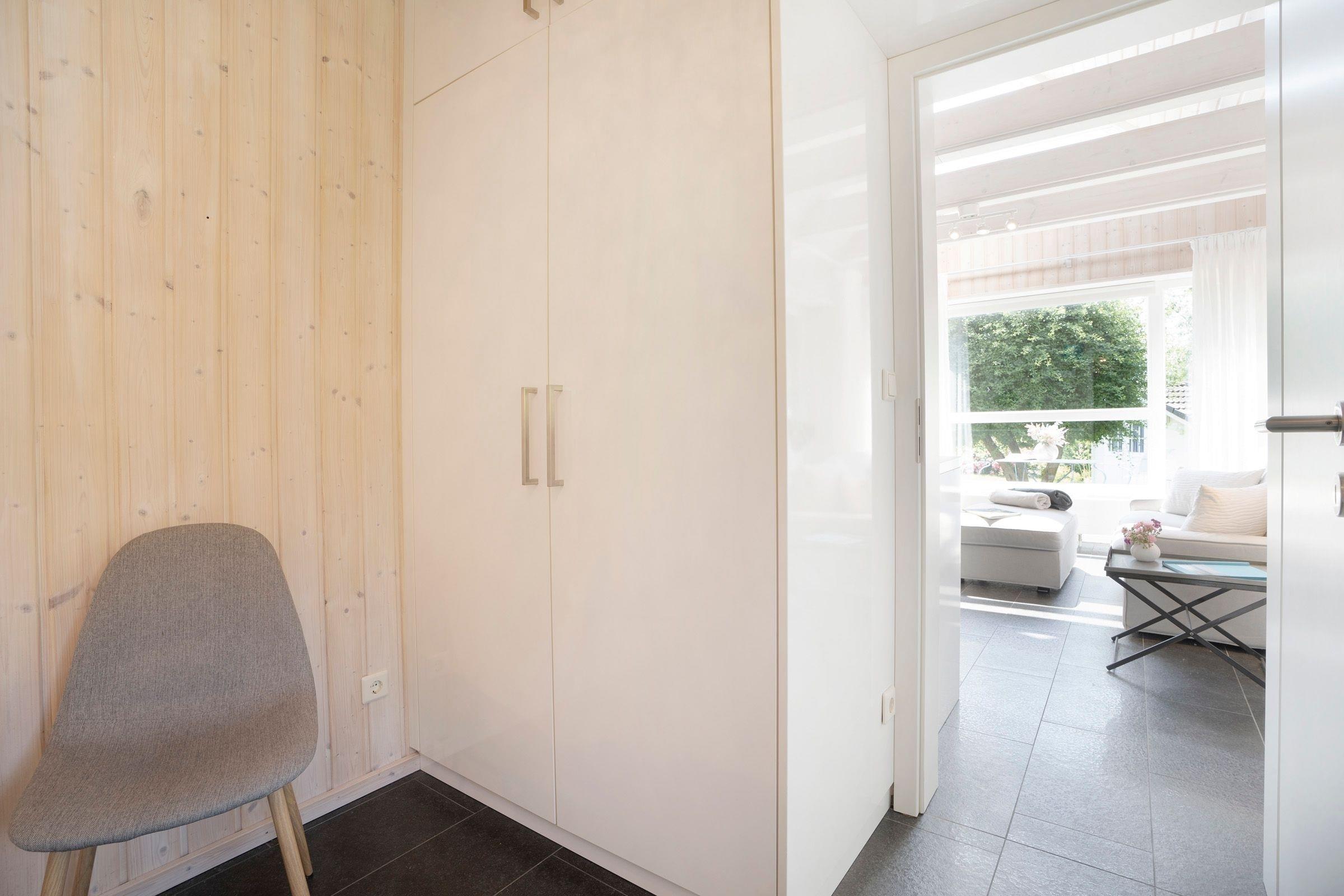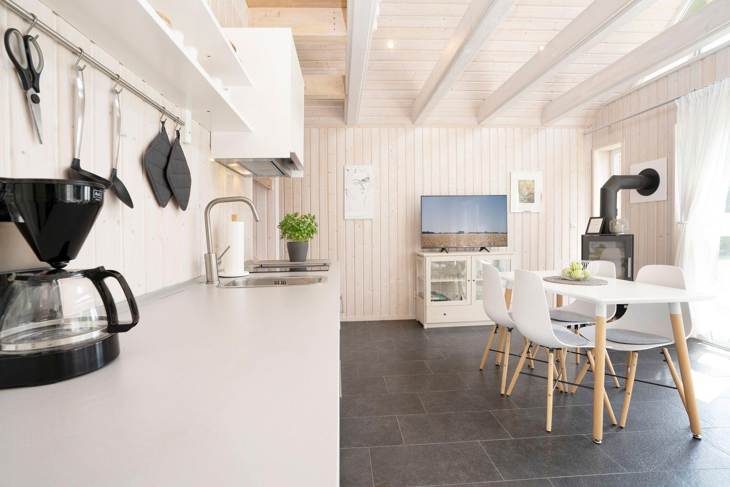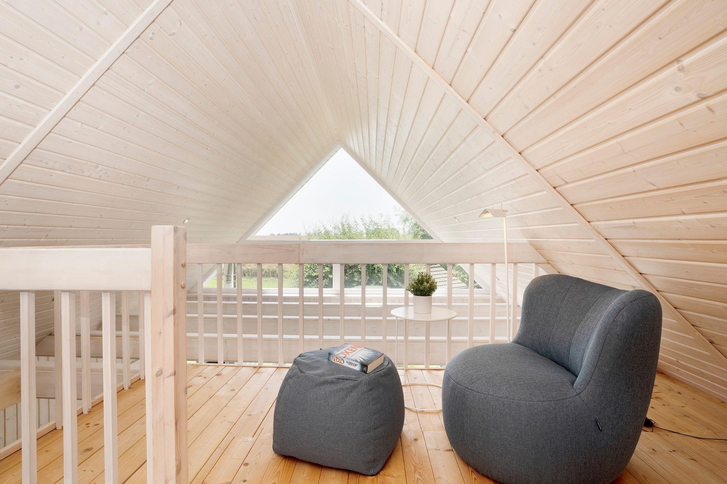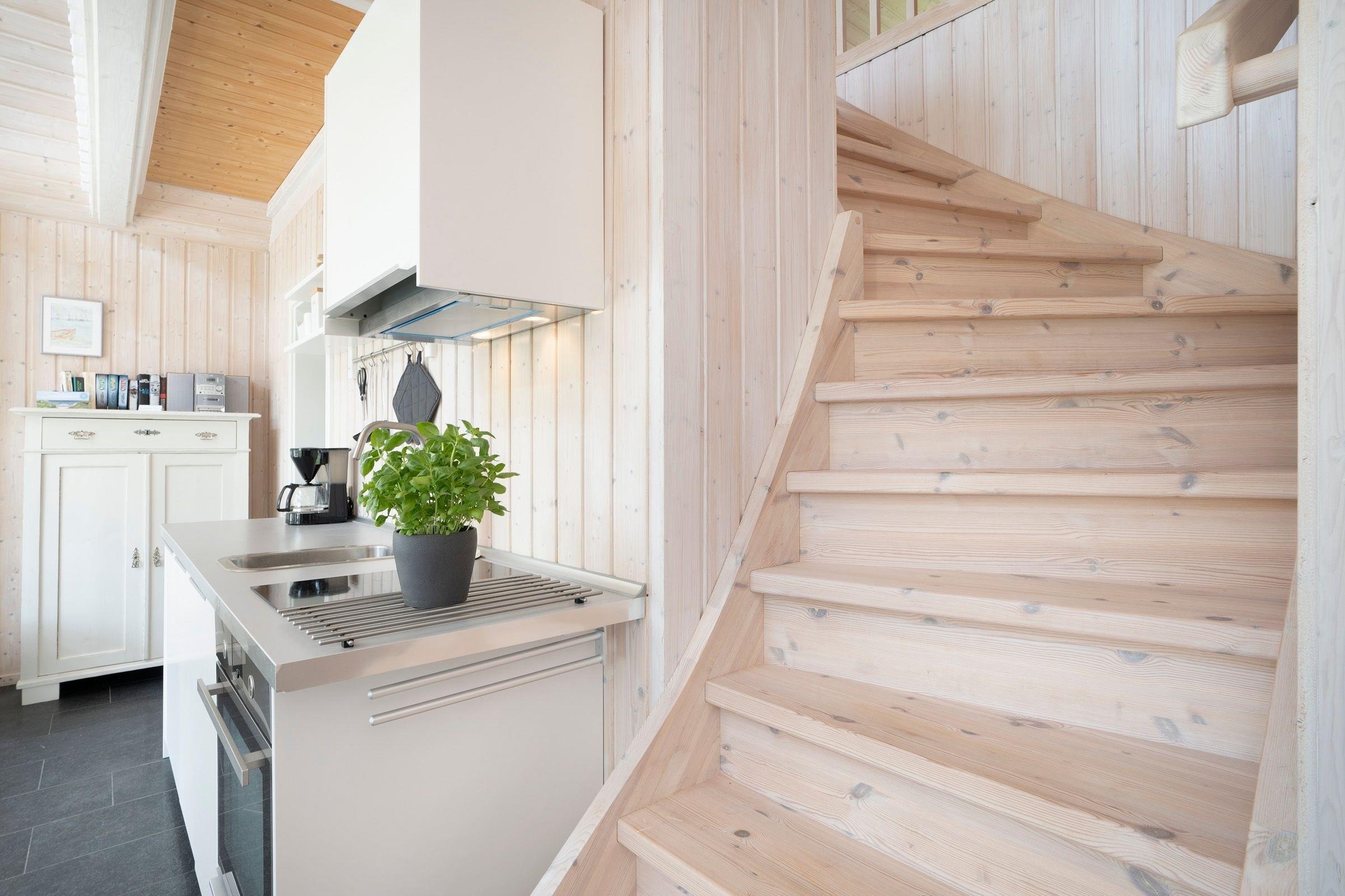 Genießen Sie den weiten Blick über die Felder, entspannen Sie auf Ihrer Terrasse oder im großen Gemeinschaftsgarten. Ein großzügiger Wohnbereich mit integrierter Küchenzeile und Essbereich, separatem Schlafzimmer mit Boxspring-Doppelbett (180x200 cm) sowie einem stilsicherem Duschbad bilden das Herzstück des Häuschens im Erdgeschoss. Im Obergeschoss befindet sich zudem eine lichtdurchflutete Galerie mit 2 weiteren Betten sowie ein Leseplatz mit Fernblick, welche Sie über die Treppe vom Wohnzimmer aus erreichen. Ein schöner Waldweg führt vom Haus bis zur Schwedenhaussiedlung und von dort gelangt man direkt zum Strand.