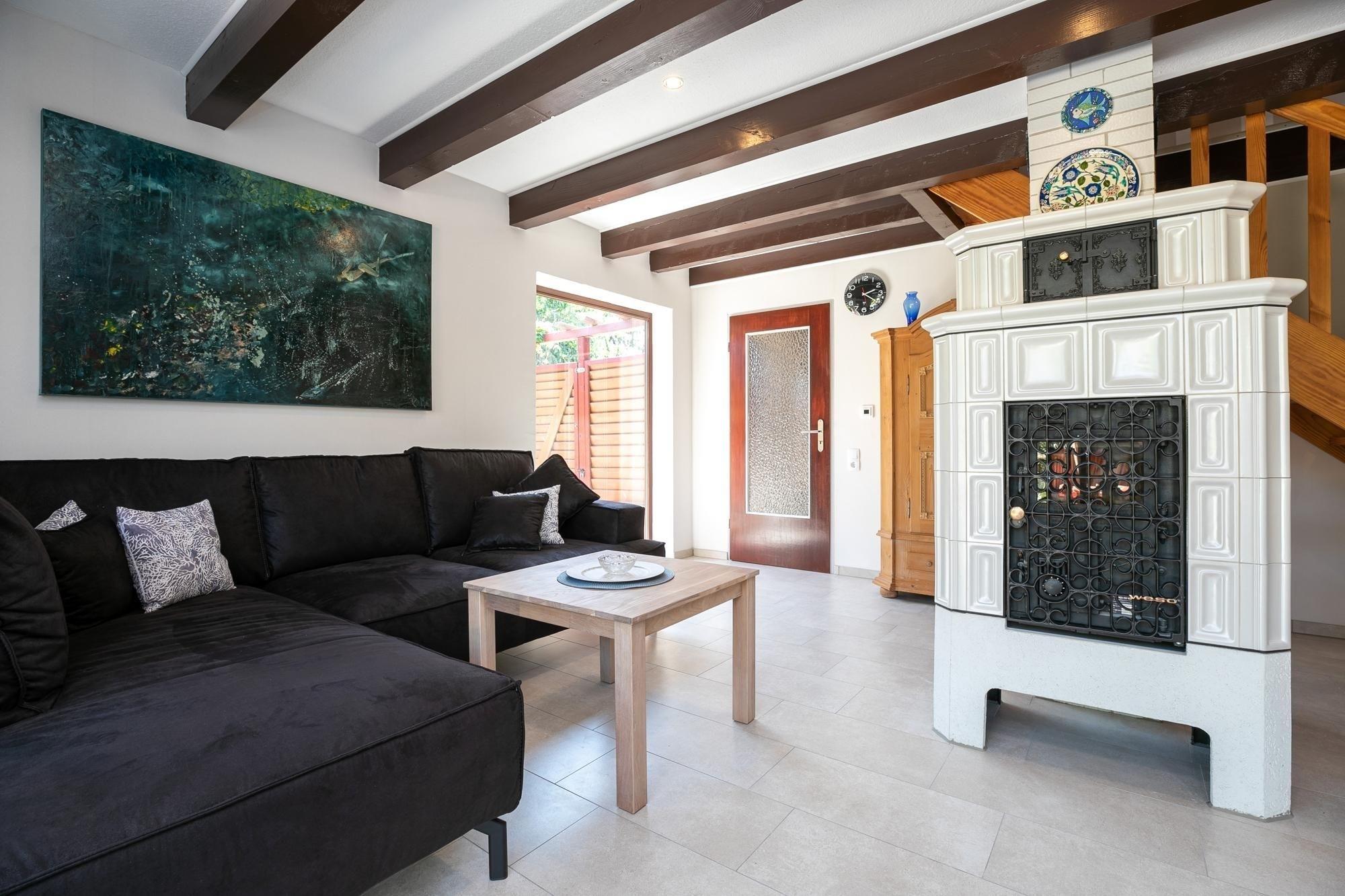 In dem Haus wohnen Sie auf 70m², verteilt auf 2 Schlafzimmer und ein Wohnzimmer, reichlich Platz für bis zu 4 Personen. Im Wohnzimmer mit angrenzender Terrasse und eingezäuntem Garten mit Strandkorb und Grill, befindet sich ein Flachbild Fernseher, sowie CD-, DVD-, Blue-Ray- Player, ein Radio und ein Kachelofen, so verbringen Sie auch einen Regentag entspannt und gemütlich. Die einladende separate Küche ist voll ausgestattet mit Kühlschrank, Gefrierfach, Kaffeemaschine, Spülmaschine, Mikrowelle, Toaster etc. Das Badezimmer verfügt über eine Dusche (80cm x 80cm), Fußbodenheizung, sowie ein Fenster. Das gesamte Erdgeschoss ist gefliest und verfügt über eine Fußbodenheizung.