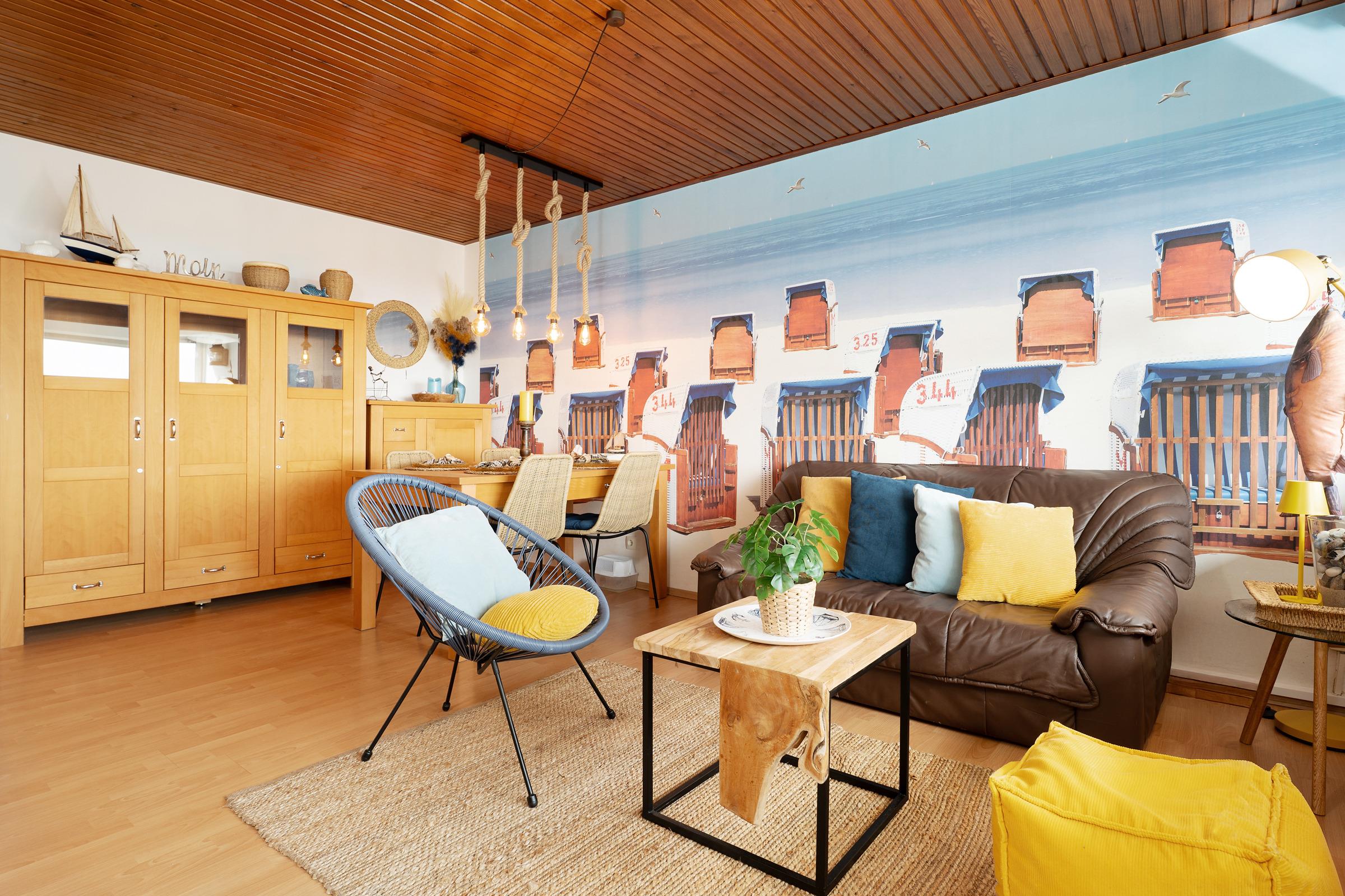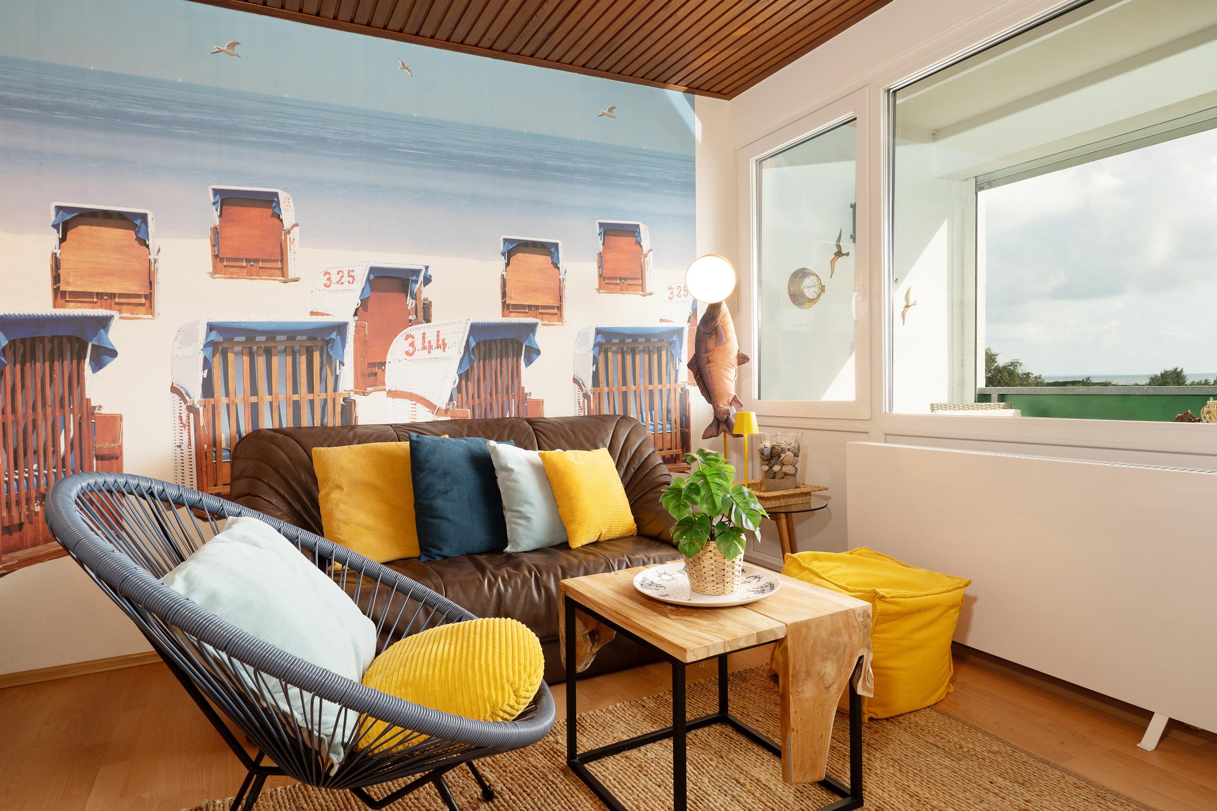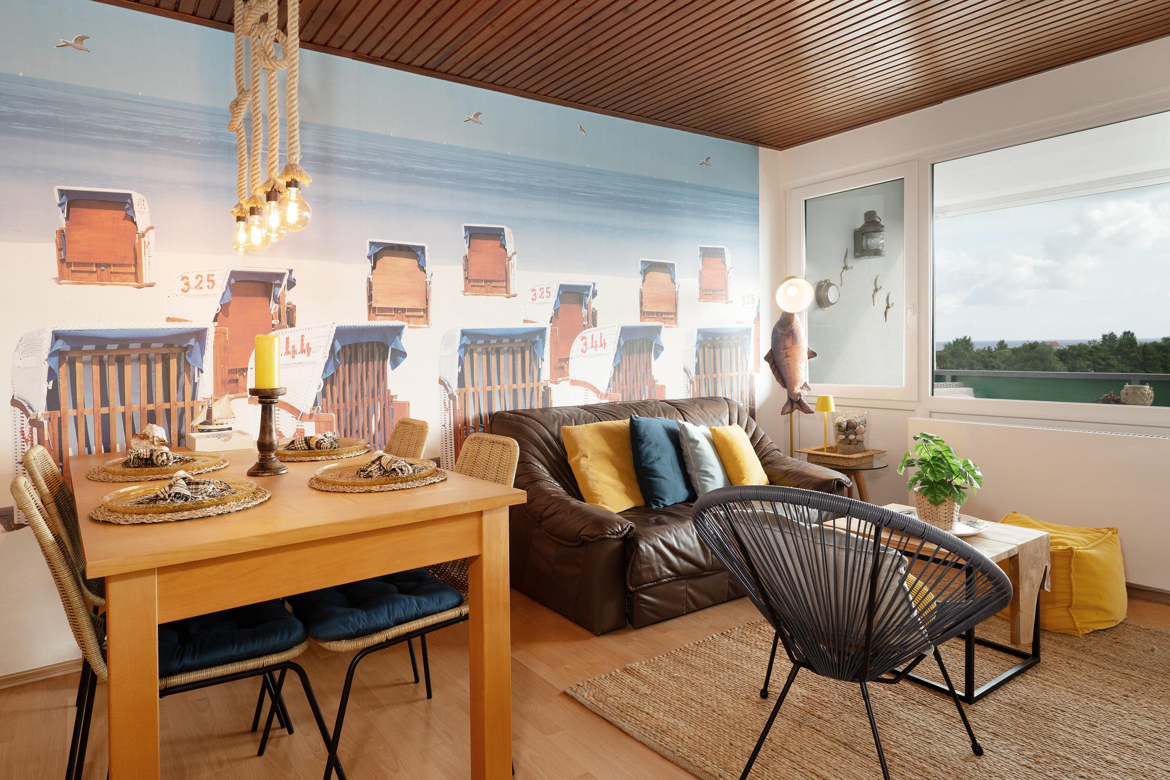 Bis zu 4 Personen können sich in dieser exklusiven 2-Zimmer-Ferienwohnung auf ca. 45 m² Wohnfläche in der 2. Etage mit fantastischem Ausblick auf die Ostsee erholen. Dieses Feriendomizil zeichnet sich besonders durch die maritime Wandgestaltung aus - Urlaubs-Feeling pur!